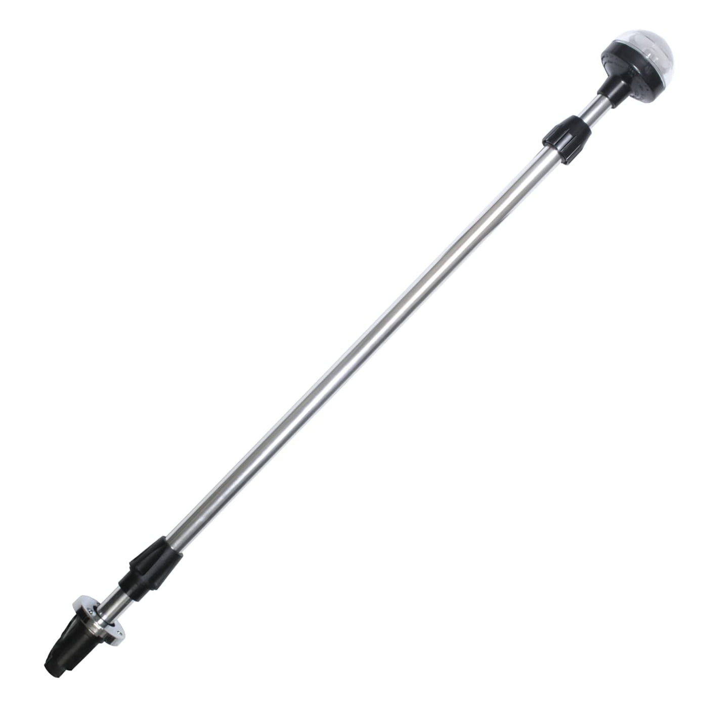 Product DescriptionTelescopic, stowable stern light demonstrates the next generation in user-friendly boating products. This innovative adaptation of a standard stow away stern light allows for increased user applications, effectiveness, versatility and convenience. Can be stored in less space than conventional stern lights. Removes quickly from easy to install standard base. Aluminum pole, with a 360° light that can be seen for up to 2 miles. 12 volt, 15 candle power bulb.• Sizes ranging from 26” to 72” • Perfect for boats up to 39’ • Can be seen for 2 nautical miles • Meets U.S.C.G. requirements • Water resistant • Standard 2 pin baseFrom the ManufacturerTelescopic Stowable Stern Light demonstrates the next generation in user friendly boating products. This innovative adaptation of a standard Stow Away Stern Light allows for increased user applications, effectiveness, versatility and convenience. Can be stored in less space than conventional stern lights. Removes quickly from easy to install standard base. Aluminum pole, 360-degree light that can be seen for up to 2 miles. 12 volt, 15 candle power bulb. Includes non-glare safety insert.