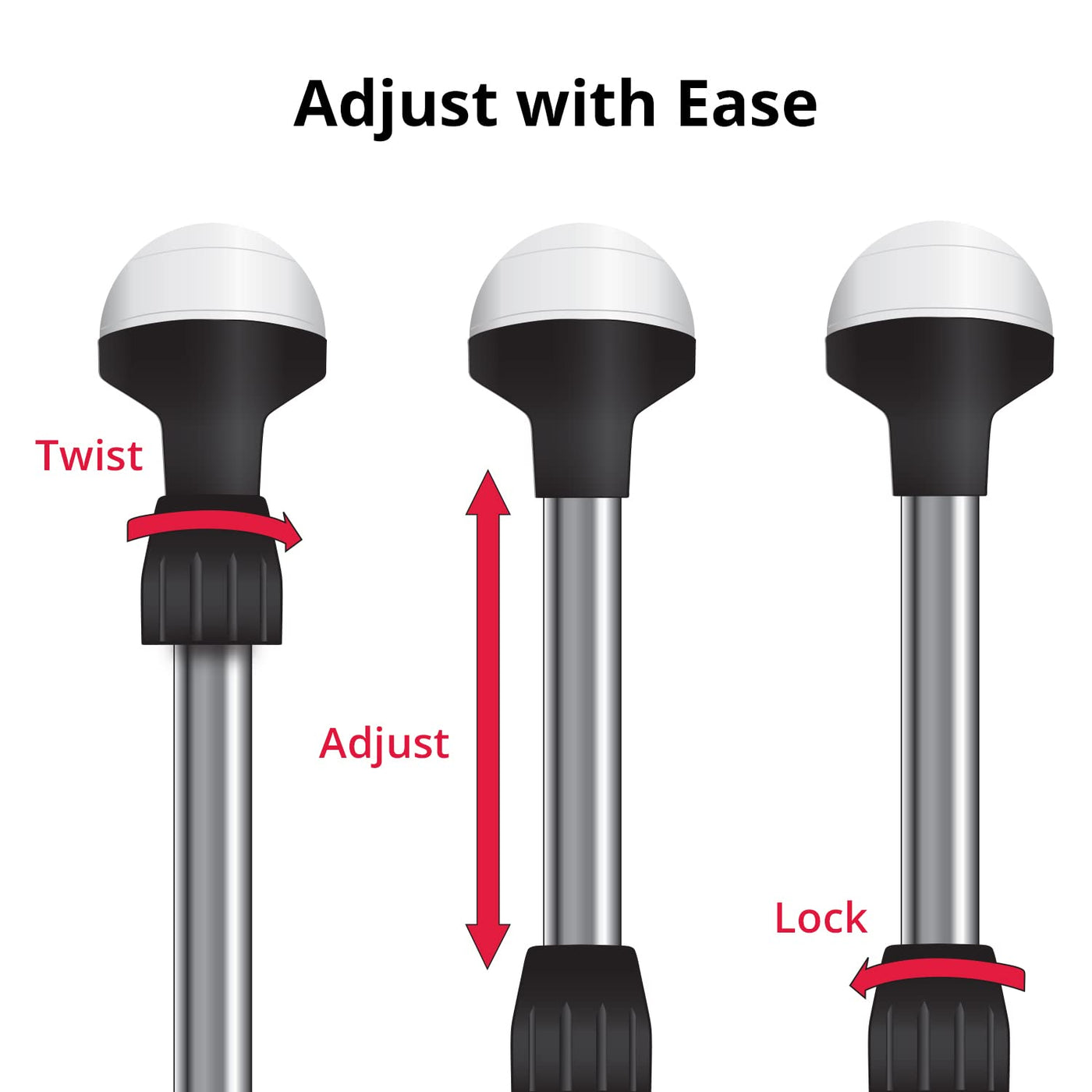 Seasense 26”-48” Telescoping All-Round Stern Light W/Base - 2 Nautical Mile Range - Adjustable, Stowable Chrome Light For Boats, Kayaks, Canoes & Pontoons Up To 39 Feet - Meets Uscg Requirements