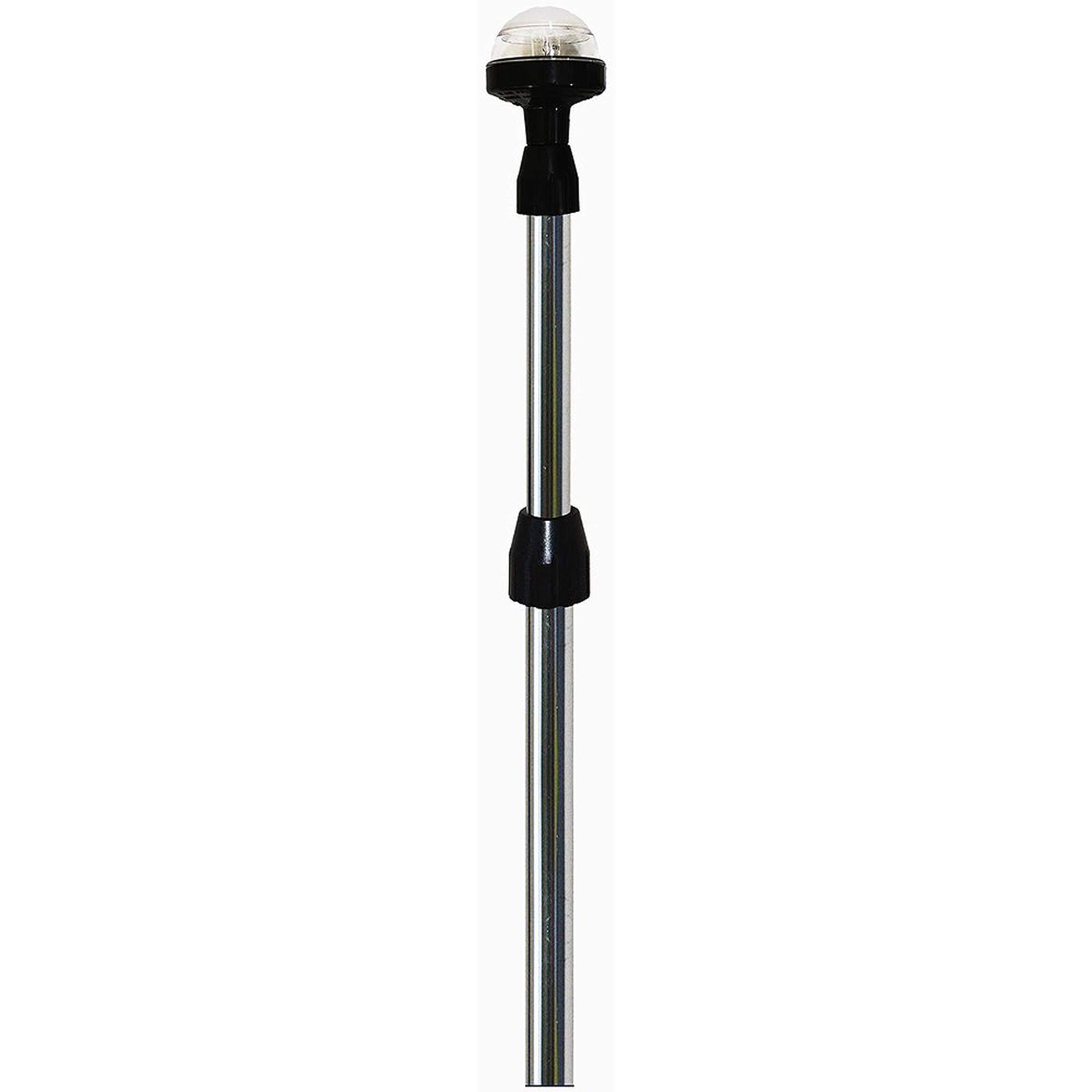 Our SeaSense Standard 12 Volt Telescopic All Round Light is designed extend from 26" to 48" - perfect for Boats up to 39'. This Stern Light is a Telescopic, Stowable Stern Light, demonstrating the next generation in user-friendly boating products. With a 360 degree light that can be seen for up to 2 miles, this innovative adaptation of a standard stow-away stern light allows for increased user application, effectiveness, versatility and convenience. Can be stored in less space than conventional stern lights. Removes quickly from easy-to-install standard base. Aluminum pole, 12 Volt, 15 Candle Power Bulb.