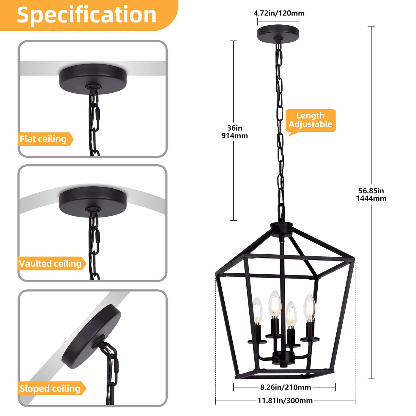 - **E12 Bulb Required**: This farmhouse chandelier includes 4 E12 lamp holders, allowing you to choose from various bulb types, including LED, CFL (maximum 13W), incandescent (maximum 60W), or fluorescent (bulbs not included). Easily customize your lighting atmosphere by selecting the bulbs that best suit your style.