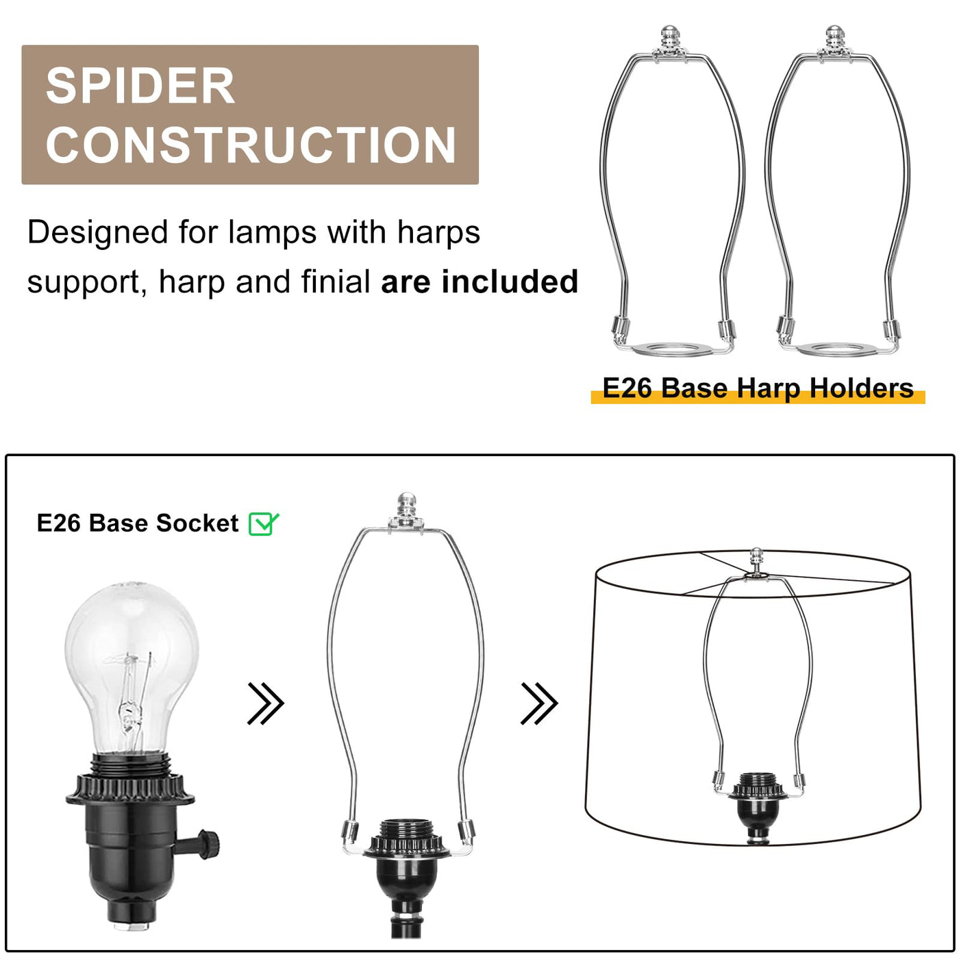 Spider Fitter Type: Designed to rest securely on harps above the light bulb, ensuring a stable fit (harps and finials not included).