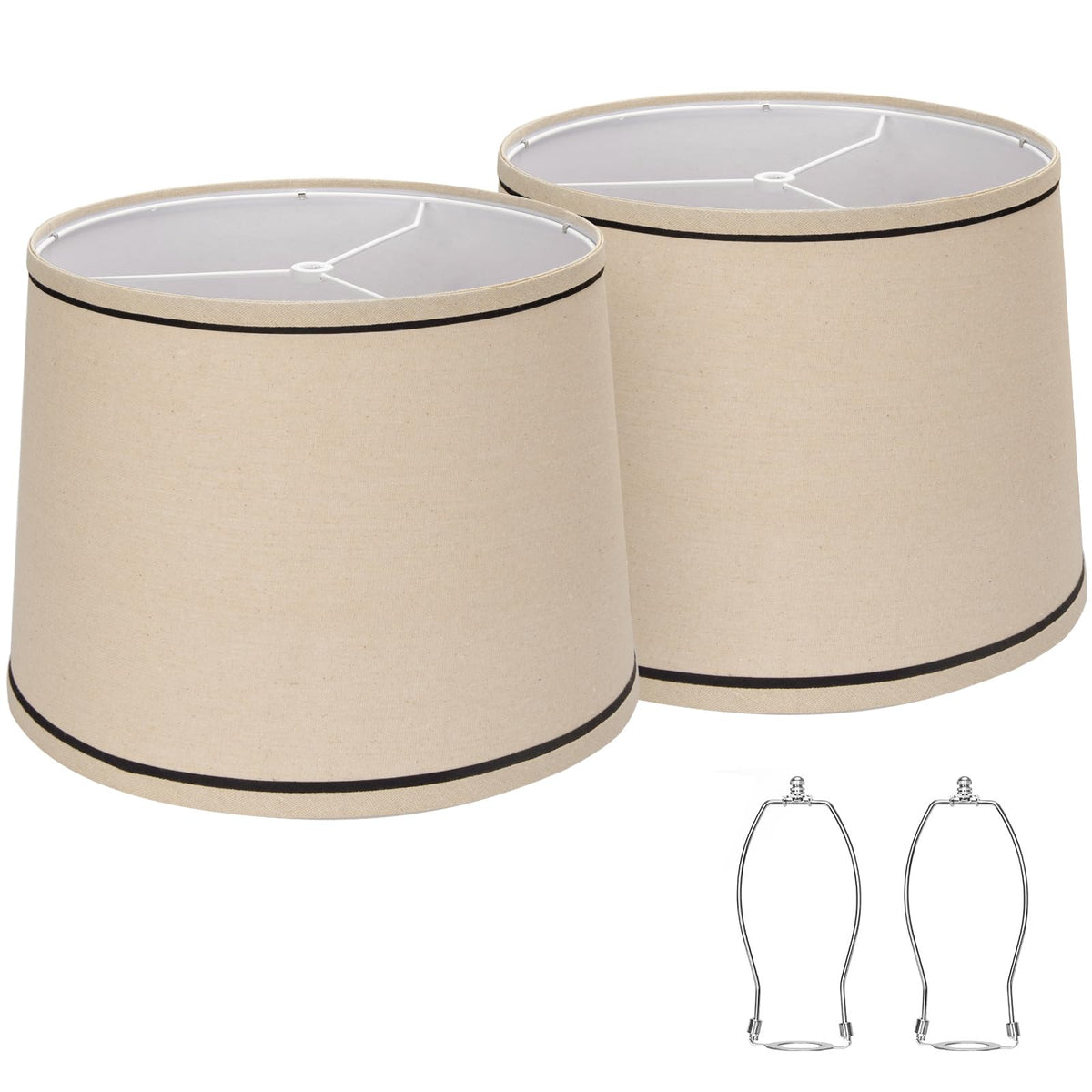Crafted from well-made fabric with a solid metal frame, these lampshades offer durability and stability. The beige shade features a sleek black rim, making it a versatile addition to modern, mid-century, farmhouse, vintage, rustic, and urban designs. The medium size is suitable for most lamp bases, ensuring a seamless fit in your home. Assembly is quick and easy, requiring just a few minutes to attach the shades to the metal rings.
