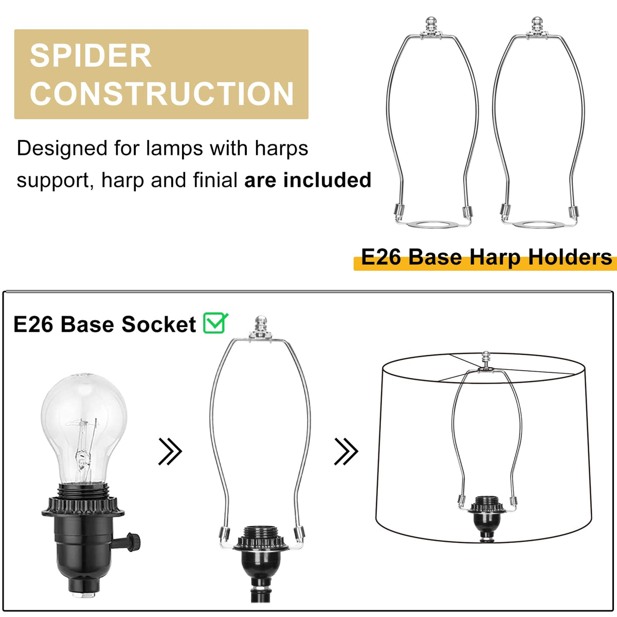 Spider Fitter Type: Designed With Washer Fitters For Easy Attachment To Lamps That Require Harps And Finials (Not Included).