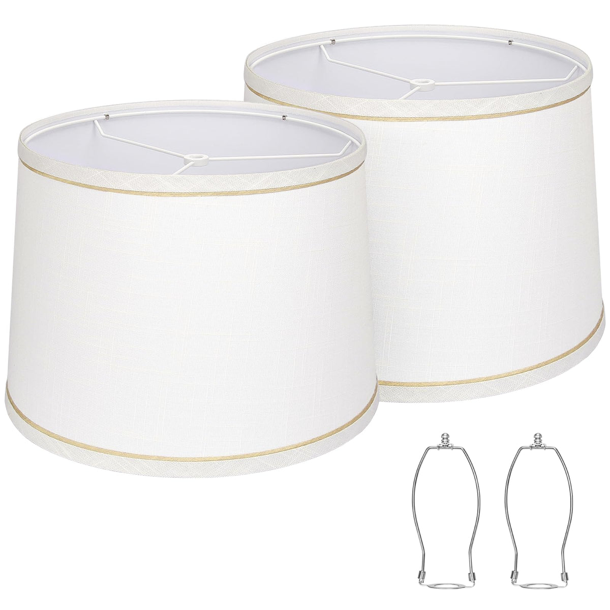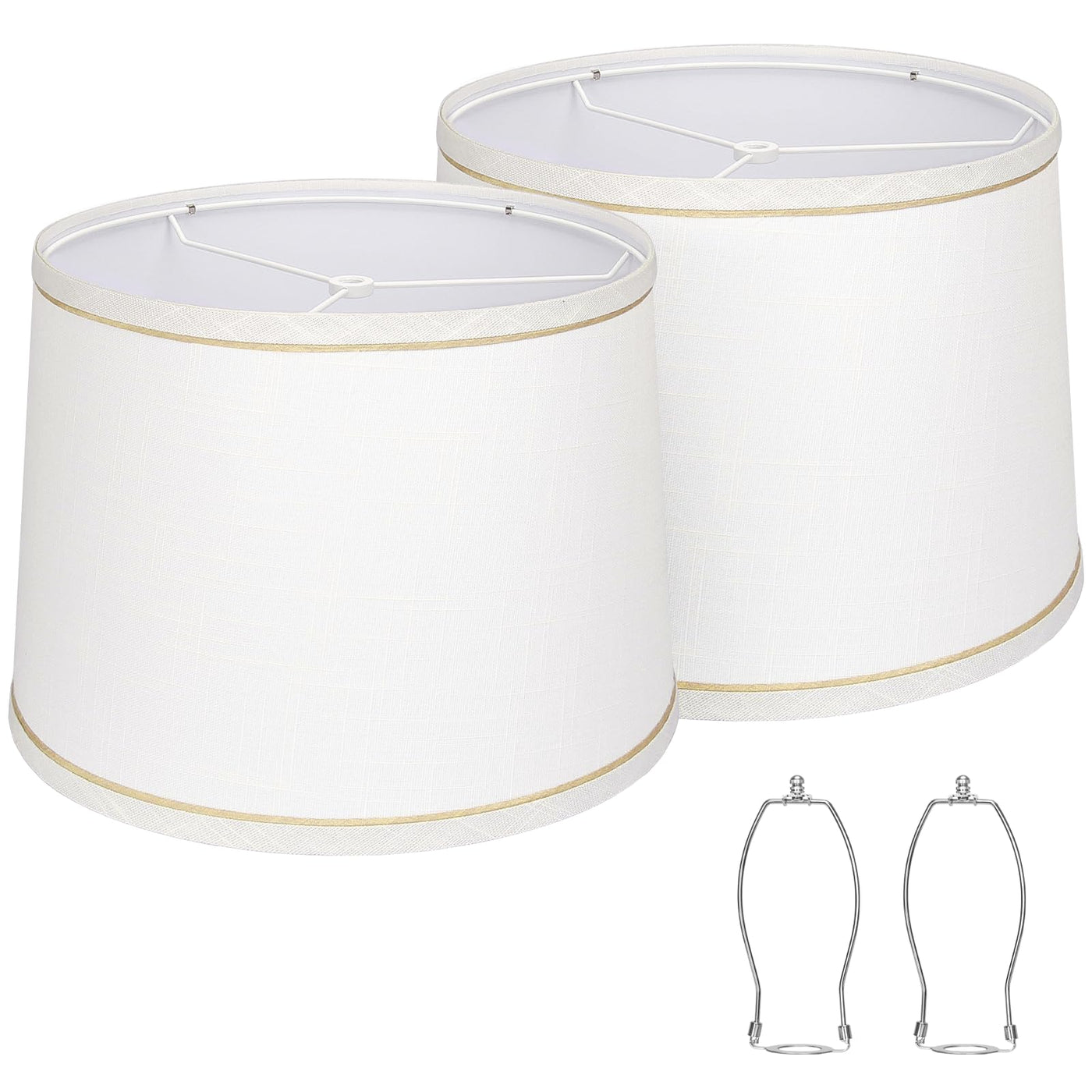 Crafted From Quality Materials, These Lamp Shades Feature A Durable Exterior Made From Fine Fabric And A Sturdy Polyethylene Interior. The Solid Metal Frame Ensures Long-Lasting Stability, Making Them A Reliable Choice For Everyday Use. With A Unique Design That Combines A White Shade With A Light Brown Rim, These Lamp Shades Easily Blend With Various Home Decor Styles. They Are An Ideal Addition To Nightstand Lamps, Bedside Lamps, Or Living Room Fixtures. Additionally, They Make A Thoughtful Gift For Family And Friends.