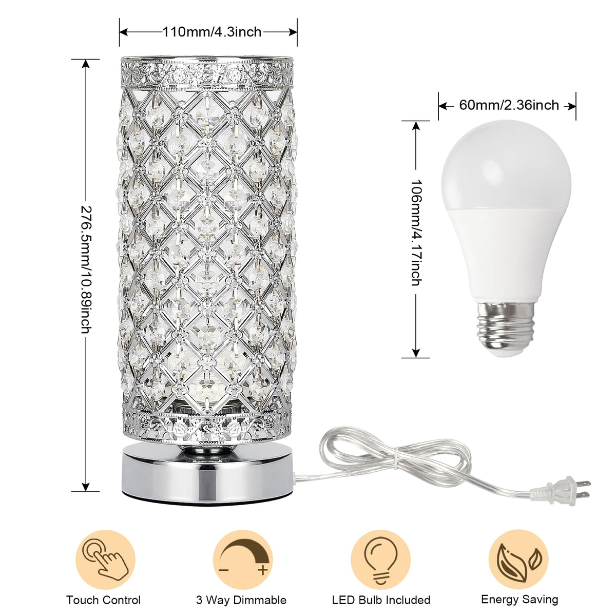 - **Versatile Size**: With dimensions of 4.3 inches in diameter and a height of 10.89 inches, this lamp is perfectly sized to fit on any table or nightstand, enhancing your decor without taking up too much space.