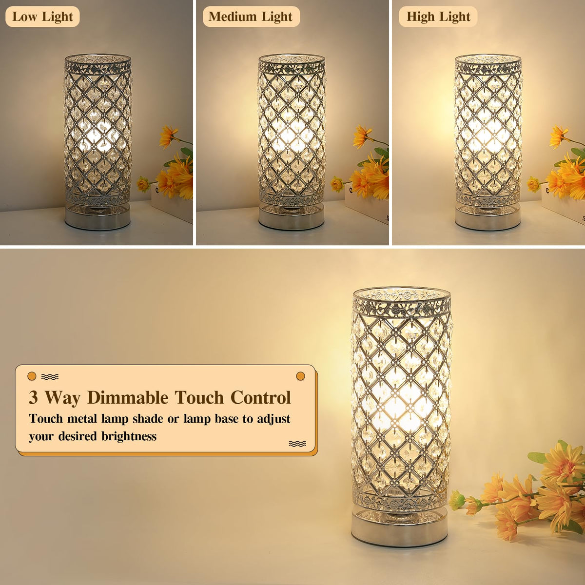- **Touch Sensor Control**: Experience the convenience of a touch-sensitive operation with four adjustable brightness settings (Low, Medium, High, Off). Simply touch the sturdy metal base or the lamp shade to customize your lighting ambiance effortlessly.