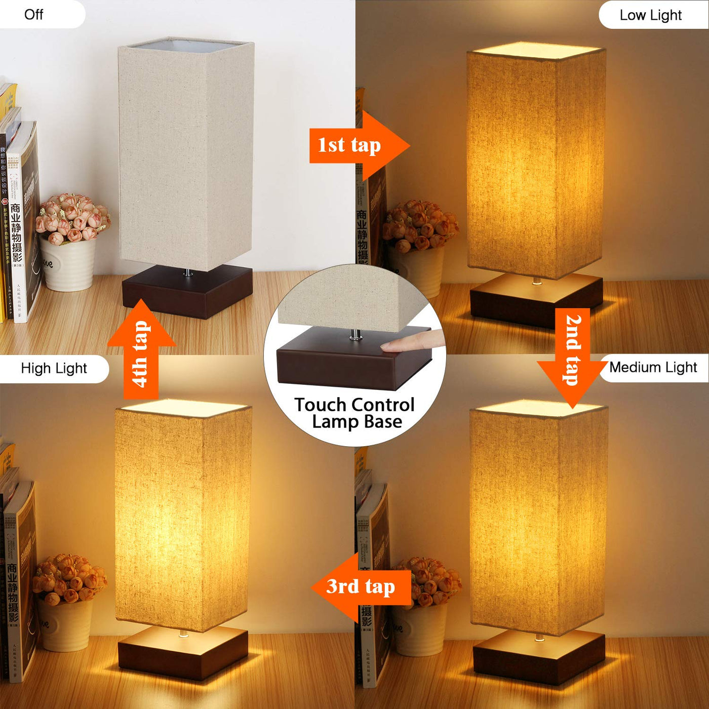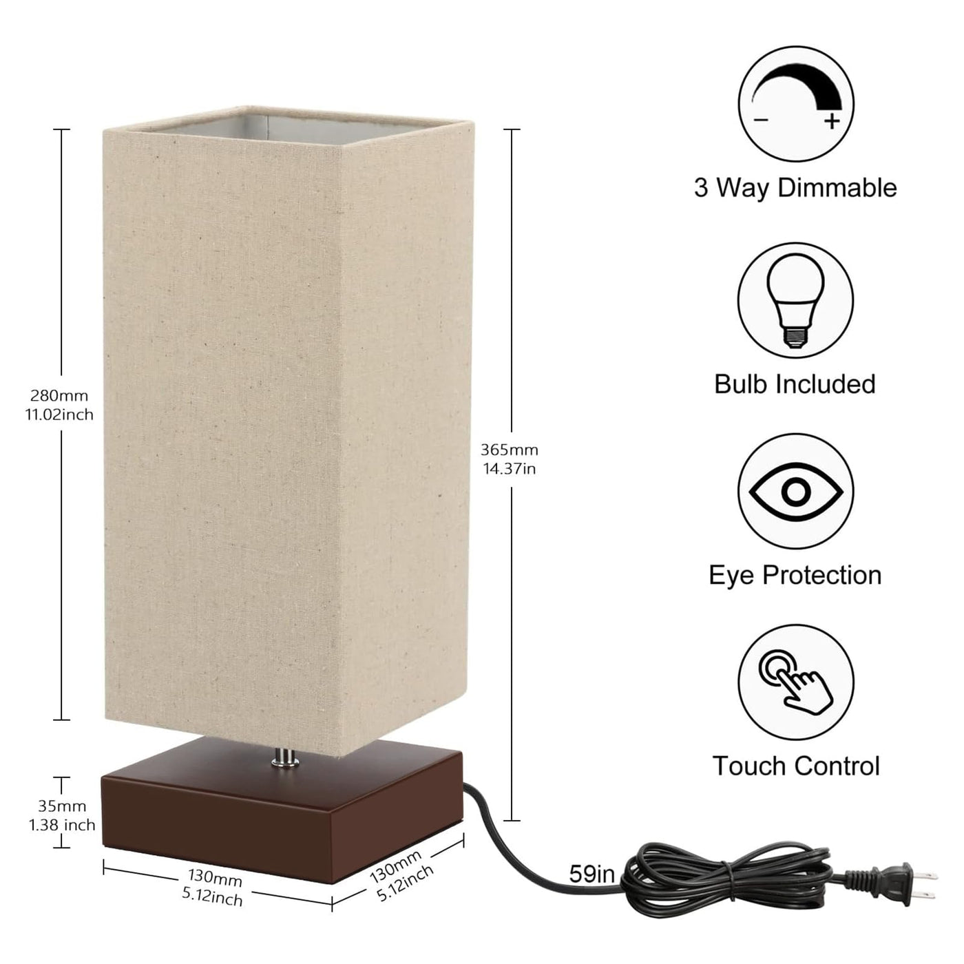 Seaside Village Touch Control Table Lamp, 3-Way Dimmable, Modern Fabric Shade, Beige/Brown