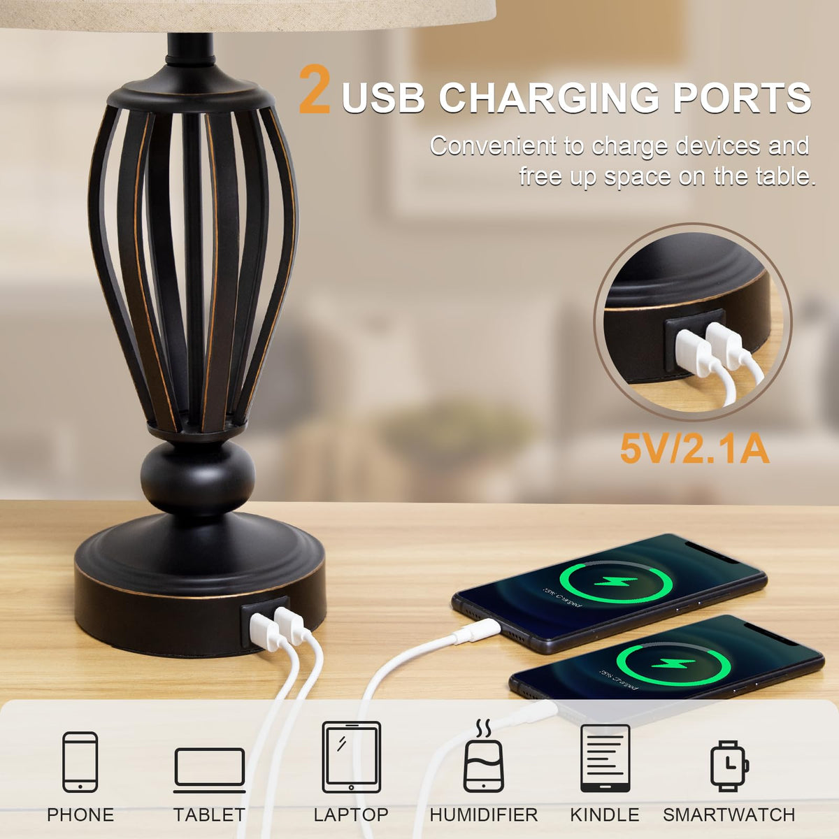 Q: Is the lamp suitable for use in different rooms?A: Yes, the USB bedside lamp is designed for versatile use in various settings such as bedrooms, living rooms, offices, or studies, thanks to its modern farmhouse design and practical features.