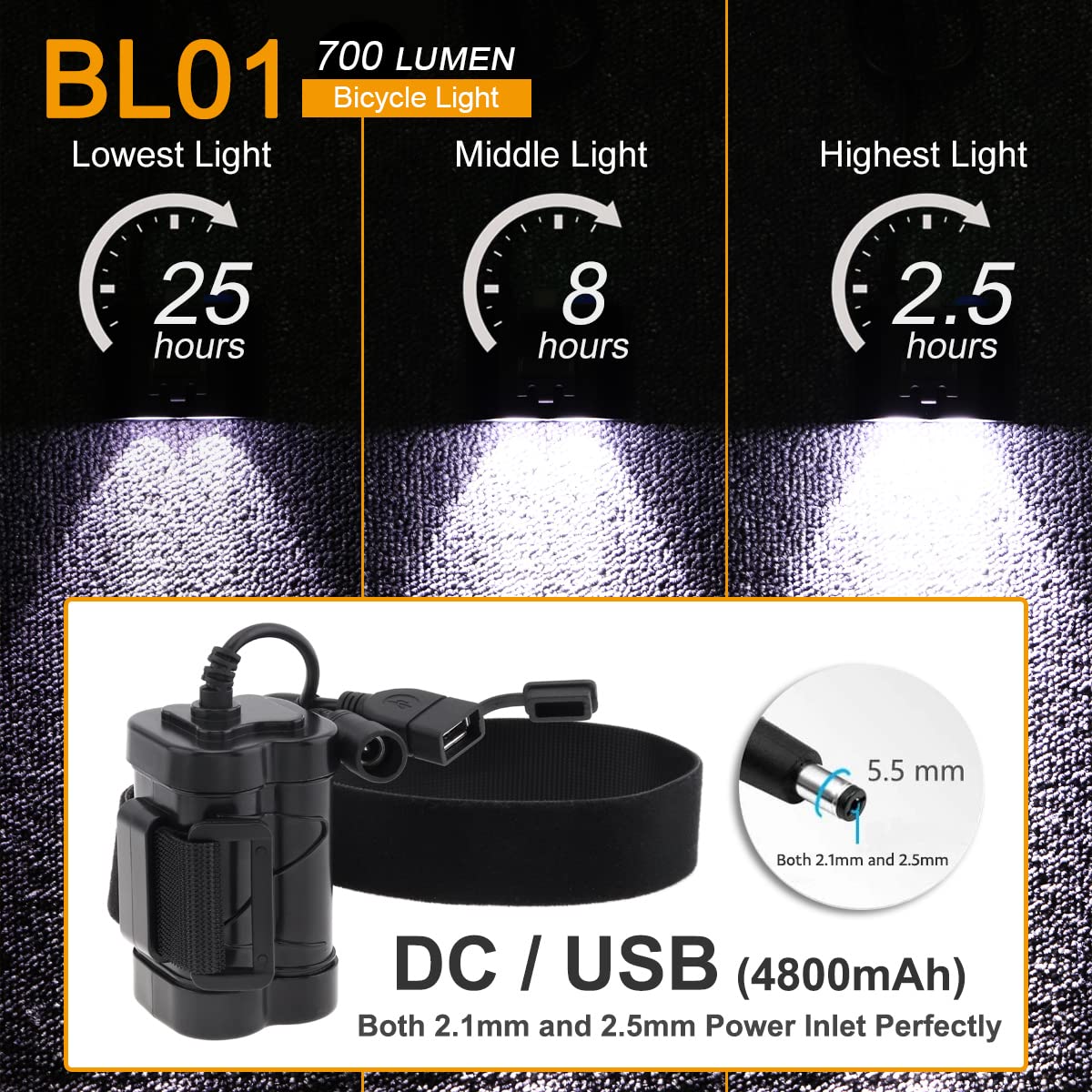Securitying Waterproof 700 Lumens Led Bicycle Light 4 Modes Super Bright Bike Lamp Headlight + 8.4V Rechargeable Battery Pack + Charger For Camping, Cycling, Hiking, Riding