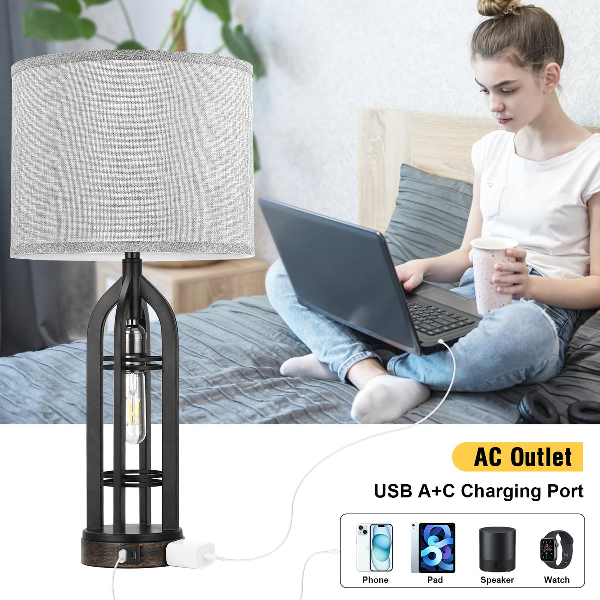 Seealle Table Lamp For Living Room Set Of 2 - Bedside Lamp For Bedroom With Usb C+A & Outlet, Farmhouse Lamps For Night Stands,