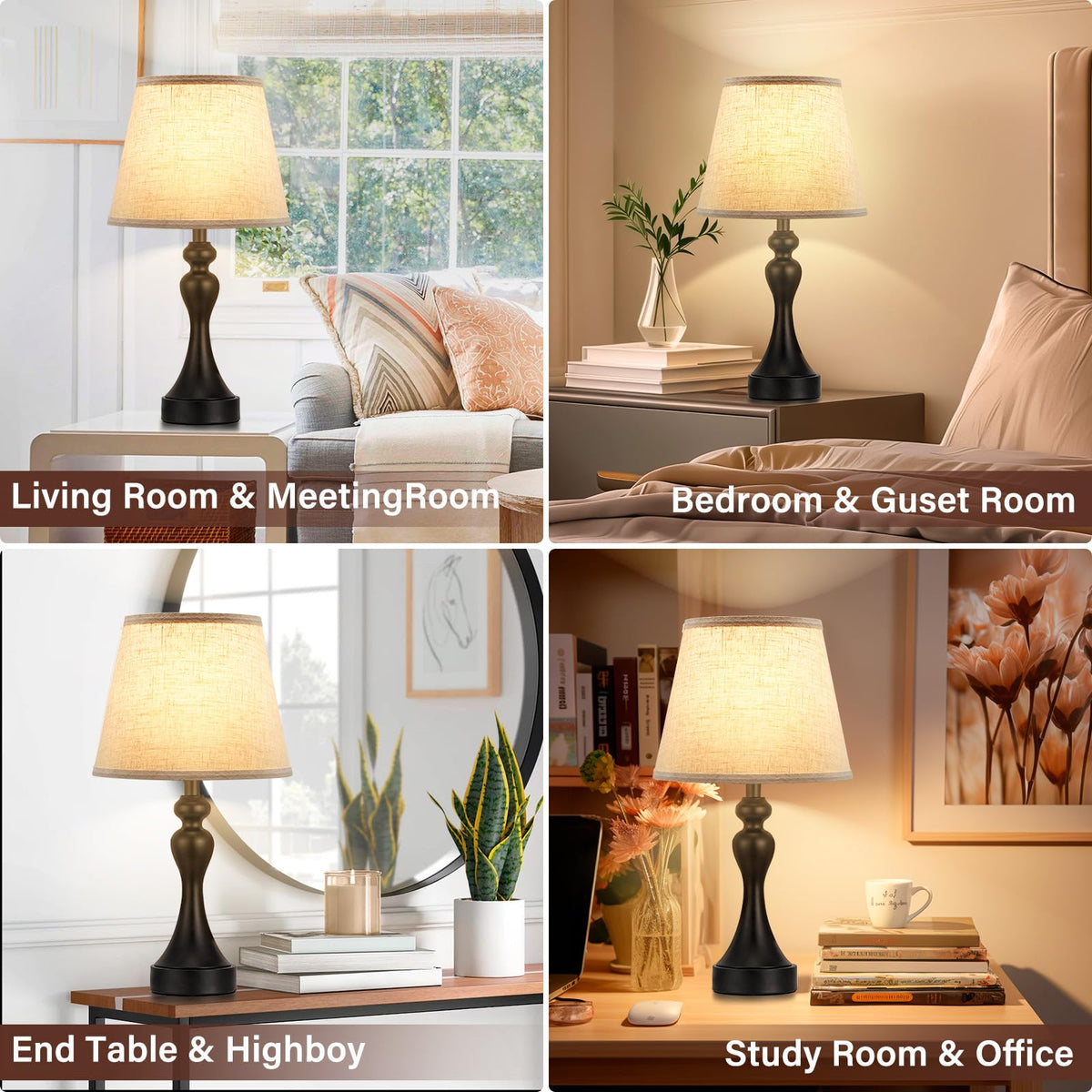 Q: What styles of decor do these lamps complement?A: The Seealle Touch Lamps feature a sophisticated design with a solid metal base and a beige shade, making them suitable for various decor styles, including modern, contemporary, and classic aesthetics. They can enhance the look of bedrooms, living rooms, nurseries, and more.