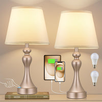 Seealle Touch Lamps For Nightstand - Bedside Lamps Set Of 2, 3 Way Dimmable, Usb C+A For Bedroom & End Tables (Flash-Grey&White)