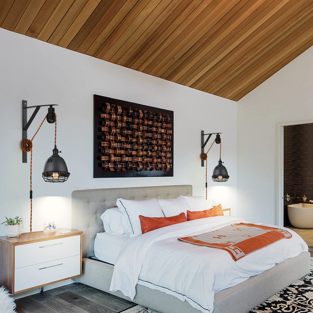 Unique Design: Vintage Design Industrial Wheel Farmhouse Wall Mount Pulley Wall Pendant Lamp With Plug-In Wall Lamp, Using Thick Iron And Superb Black Paint Process, The Pulley Bracket Is Very Strong And Durable | Industrial Style: You Can Use This Wall Light In Your Living Room, Dining Room, Bathroom, Kitchen, Entryway, Home Office, Etc.The Unique Design Comes With An Iron Pipe And Pulley To Create A Beautiful Wall Lamp D