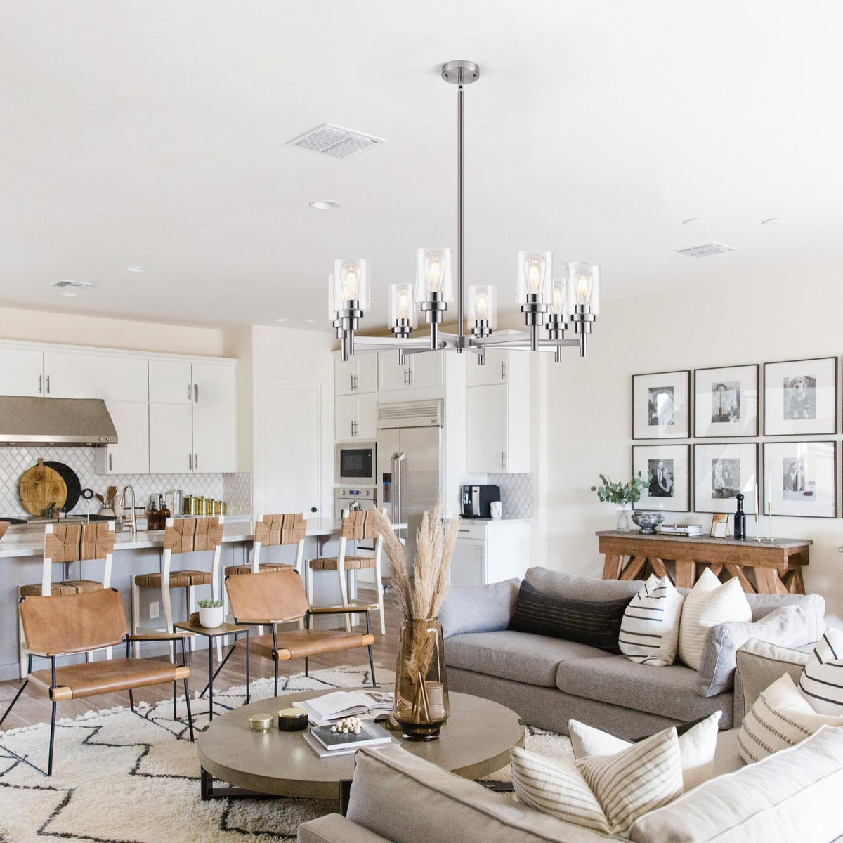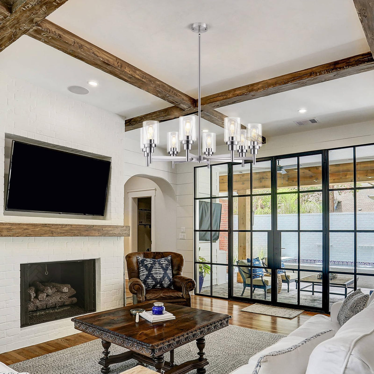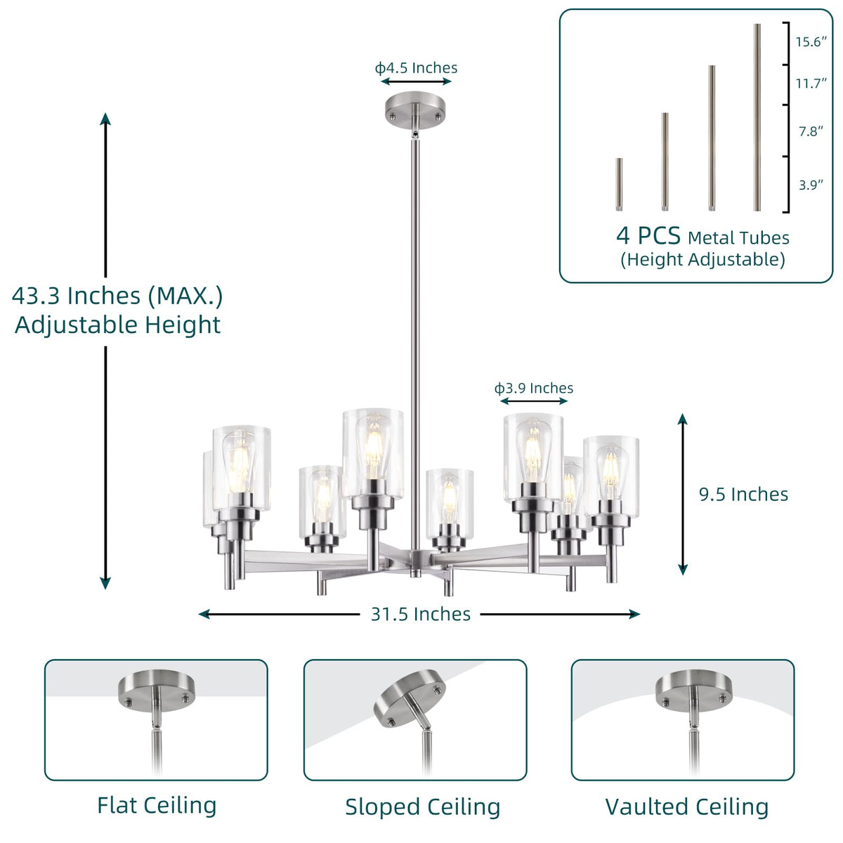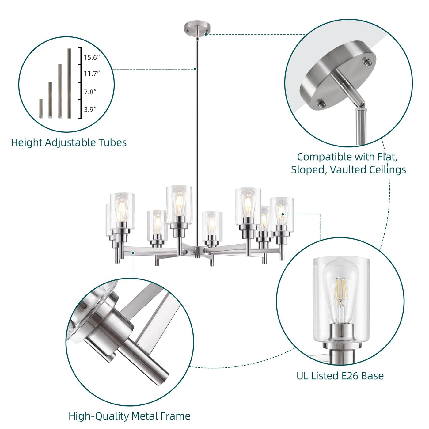 Seilisy 8 Lights Brushed Nickel Chandelier For Dining Room, Farmhouse Modern Contemporary Industrial Ceiling Hanging Pendant Lig
