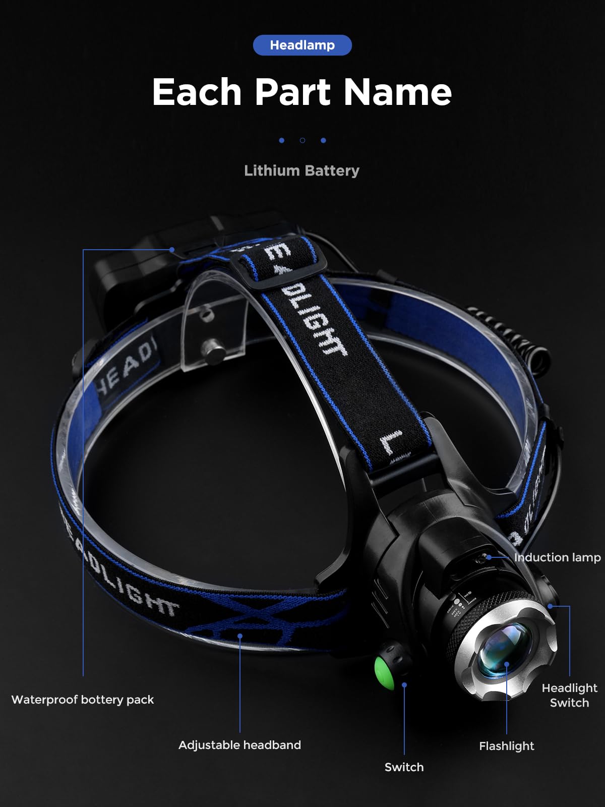 - **Super Brightness & Zoom Functionality**: Equipped with a high-performance LED chip, this headlamp delivers an incredible 1500 lumens of brightness, visible from up to 150 feet away. Experience exceptional clarity in darkness and utilize the spotlight zoom feature to focus on specific areas as needed.