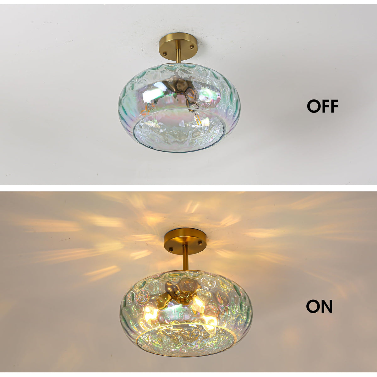Semi Flush Mount Ceiling Light, 14'' Large 3-Lights Ceiling Light Fixture With Iridescent Hammered Glass Shade, Modern Chandelie