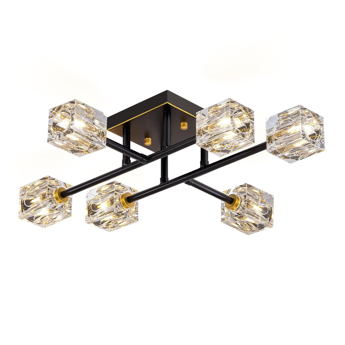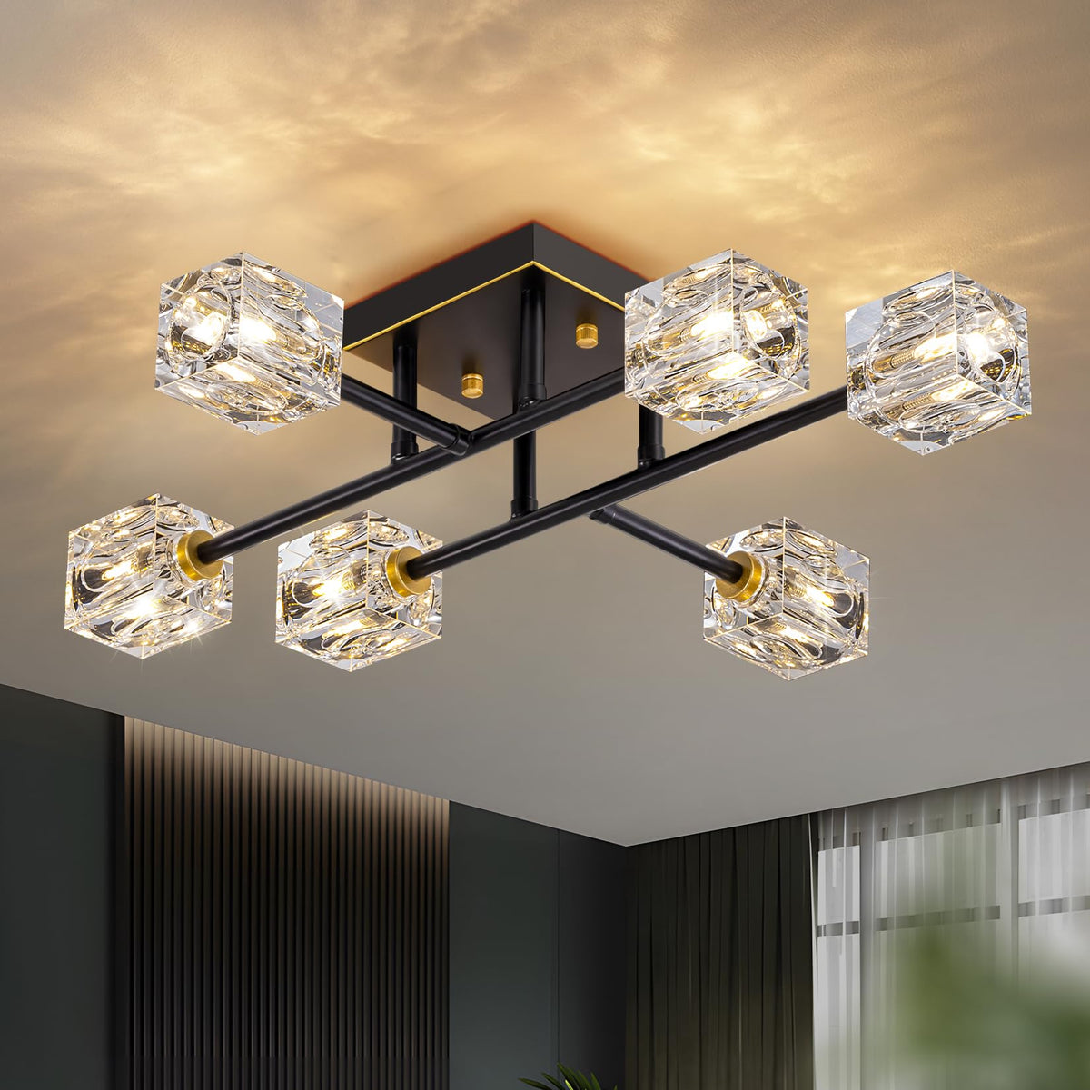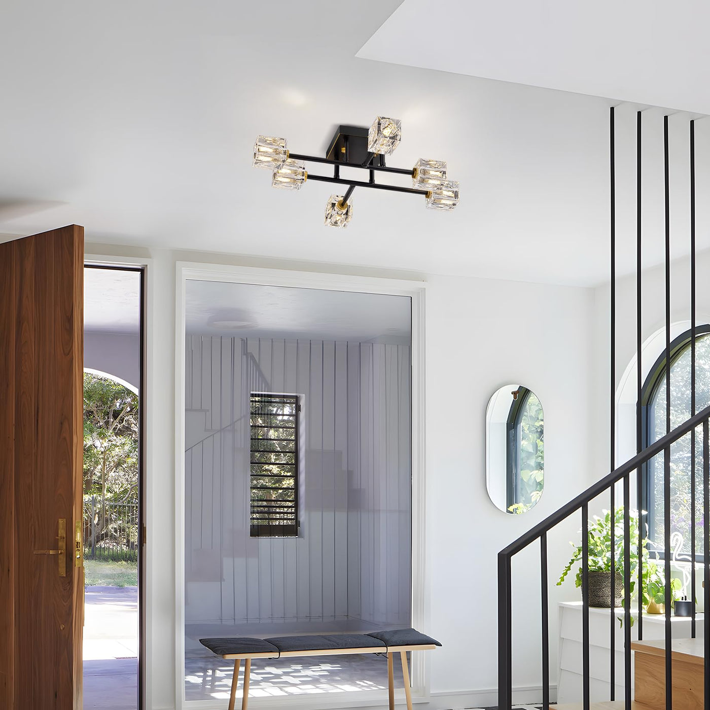 Semi Flush Mount Ceiling Light Fixture 6-Light Modern Crystal Chandeliers Black And Gold Farmhouse Lighting Fixtures For Dining Room Living Room Kitchen Bedroom Entryway
