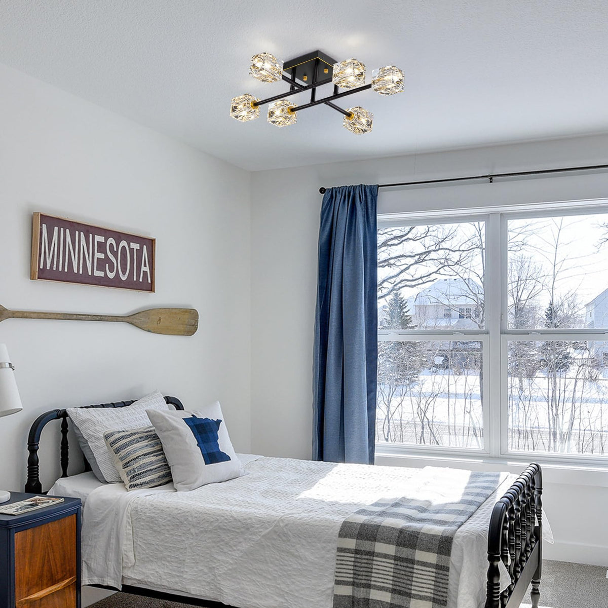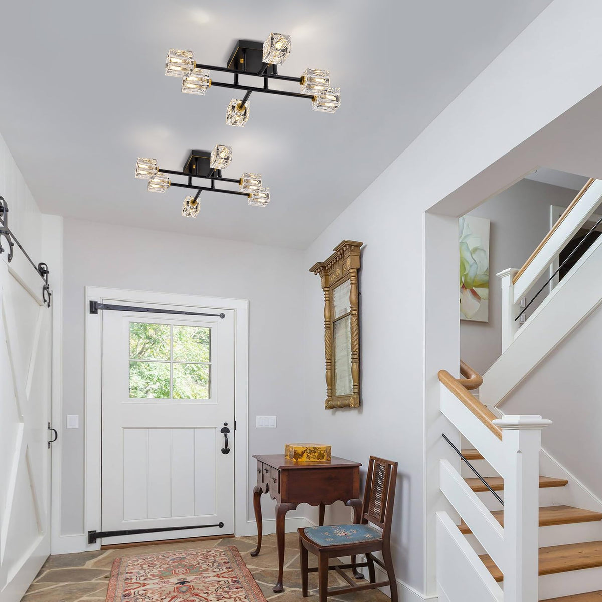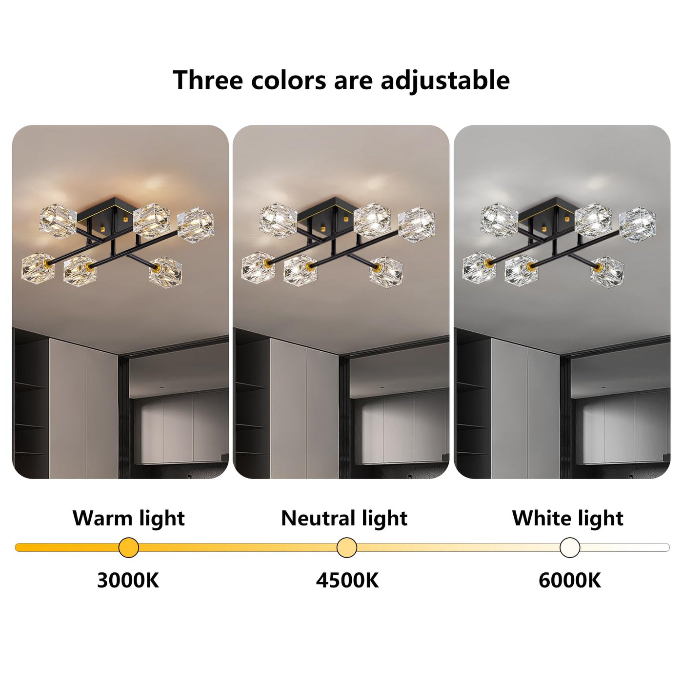 Semi Flush Mount Ceiling Light Fixture 6-Light Modern Crystal Chandeliers Black And Gold Farmhouse Lighting Fixtures For Dining Room Living Room Kitchen Bedroom Entryway