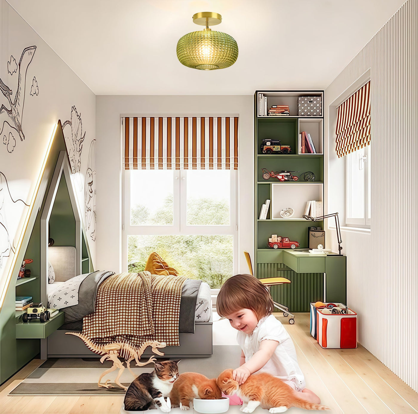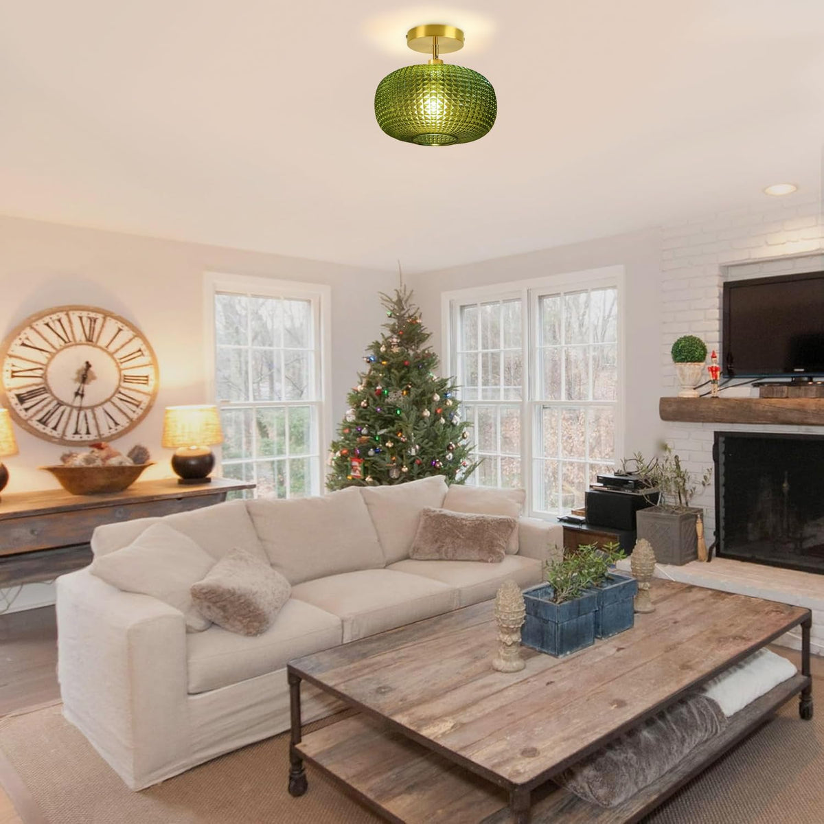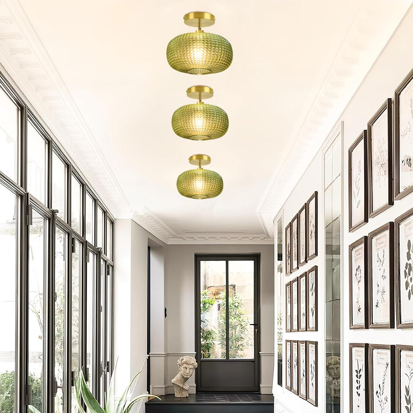 Semi Flush Mount Ceiling Light Fixture Hallway Light Fixtures Vintage Globe Glass Ceiling Fixture With Green Shade Kitchen Ceiling Light Fixture Farmhouse Ceiling Lighting For Bathroom Entryway Porch