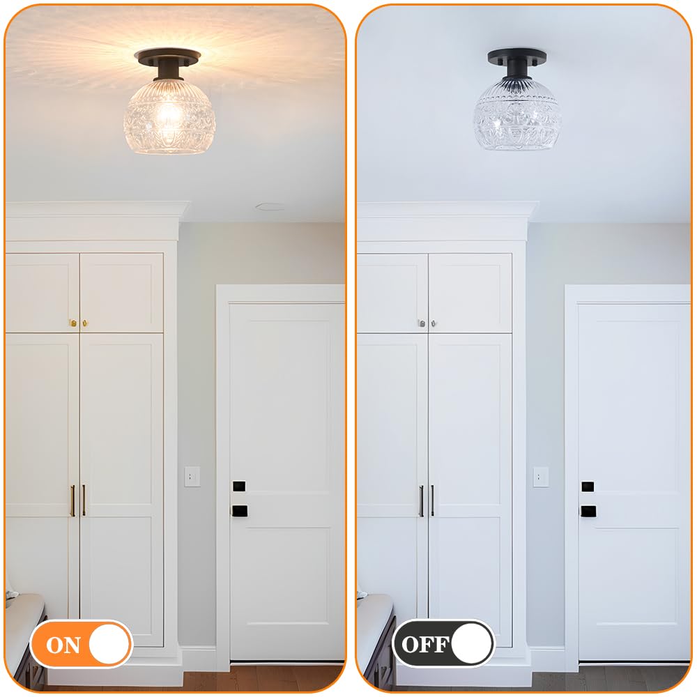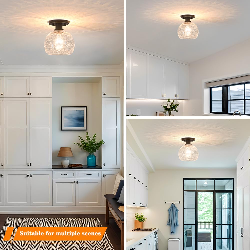 Product Description: Enhance Your Home'S Ambiance With Our Semi Flush Mount Ceiling Light, A Perfect Blend Of Vintage Charm And Modern Functionality. This Exquisite Ceiling Light Fixture Features A Stunning Black Finish And Elegant Globe Glass Design, Making It A Timeless Addition To Any Room. Whether You'Re Looking To Illuminate Your Hallway, Kitchen, Entryway, Bathroom, Or Closet, This Versatile Fixture Is Designed To Meet Your Needs. Key Features: Semi Flush Mount Design: Ideal For Spaces With Low To Medium Ceilings, Providing Ample Lighting Without Taking Up Too Much Space. Black Finish: The Rich Black Hue Adds A Touch Of Sophistication And Pairs Beautifully With Both Vintage And Antique Decor Styles. Globe Glass Shade: The Clear Glass Globe Diffuses Light Evenly, Creating A Warm And Inviting Atmosphere. Versatile Application: Perfect For Various Settings Including Hallways, Kitchens, Entryways, Bathrooms, And Closets. Easy Installation: Comes With All Necessary Hardware For A Hassle-Free Setup. Why Choose Our Semi Flush Mount Ceiling Light? Timeless Vintage Appeal: The Antique-Inspired Design Complements A Wide Range Of Interior Styles, From Classic To Contemporary. Durable Construction: Built To Last With High-Quality Materials Ensuring Long-Term Reliability. Energy Efficient: Compatible With Energy-Saving Bulbs, Helping You Reduce Your Energy Consumption. Ideal For: Hallways: Create A Welcoming Path With Soft, Diffused Light. Kitchens: Brighten Up Your Cooking Space With A Stylish And Functional Fixture. Entryways: Make A Lasting First Impression With A Touch Of Elegance. Bathrooms: Add A Luxurious Feel To Your Personal Space. Closets: Ensure Optimal Visibility While Maintaining A Cohesive Decor Theme. Transform Your Living Spaces With The Semi Flush Mount Ceiling Light - Where Vintage Aesthetics Meet Modern Practicality. Order Now And Experience The Perfect Blend Of Style And Functionality!