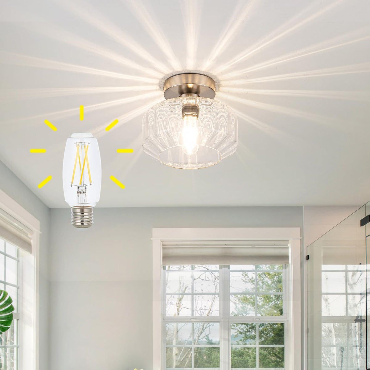 This Is A Sophisticated Semi-Flush Mount Ceiling Light That Blends Vintage Charm With Modern Design. Featuring A Semi-Flush Design With A Brushed Nickel Base And A Clear Textured Glass Shade Shaped Like A Six-Sided Diamond, This Stunning Fixture Adds A Touch Of Elegance To Any Room. As An Added Bonus, We'Ve Included An Led Bulb With That Emits 1200 Lumens Of 3000K Warm White Light. This Edison-Style Bulb Creates A Nostalgic Ambiance Reminiscent Of A Sunset, Perfect For Creating A Cozy Atmosphere In Bedrooms, Living Rooms And Other Spaces Where Relaxation And Leisure Are Desired. The Warm White Light Helps Improve Sleep Quality And Promotes A Sense Of Tranquility. To Increase Durability And Protect The Cord From Damage Or Overheating, The Cord Inside The Lamp Is Reinforced With A Protective Sleeve. This Thoughtful Design Ensures Longer Life And Safer Use. The Semi-Recessed Design Makes Installation And Maintenance A Breeze. The Shade Opening Allows For Easy Bulb Replacement And The Clear Glass Material Is Easy To Clean. Compatible With A Variety Of E26 Bulbs, This Versatile Fixture Measures 8.66 Inches Long, 4.72 Inches Wide, And 7.08 Inches High, Making It Suitable For Any Space. This Hallway Light Fixture Ceiling Is Compatible With U.S. Standard Sockets And Can Be Fitted With A Variety Of Bulbs, Including Incandescent, Led, And Cfls. It Is Suitable For A Variety Of Environments Including Kitchens, Dining Rooms, Hallways, Living Rooms, Bathrooms, Bars And Cafes. Please Rest Assured That Our Semi-Flush Mount Ceiling Light Fixtures Have Gone Through Multiple Quality Checks Before Shipping To Ensure Safety. If You Encounter Any Quality Problems, Please Feel Free To Contact Us. Choose Our Semi-Flush Ceiling Light Fixtures And Experience The Perfect Blend Of Vintage Aesthetics And Modern Functionality.