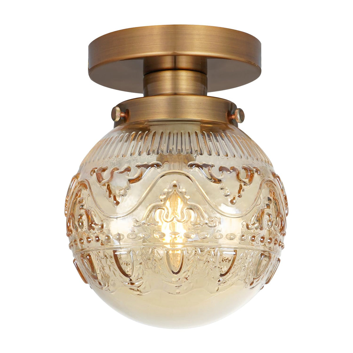 Semi Flush Mount Ceiling Light, Gold Vintage Kitchen Ceiling Light Fixture, Amber Globe Glass Close To Ceiling Light, Hallway Ce