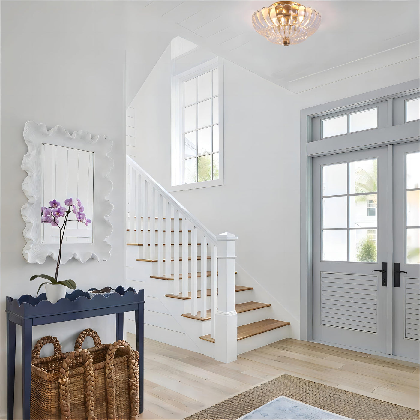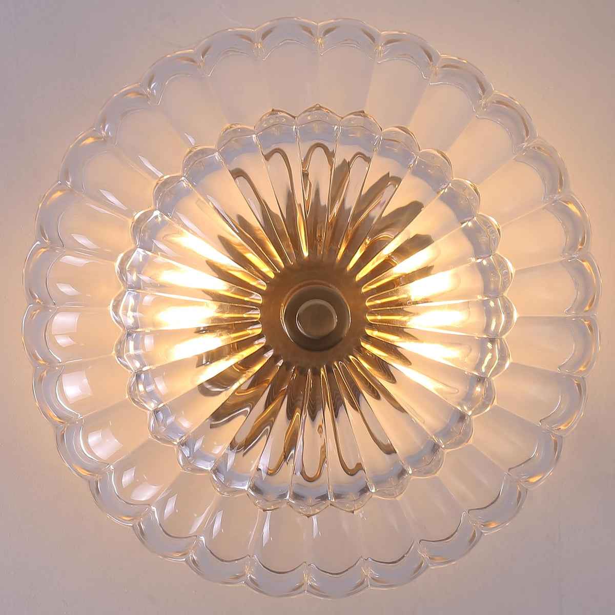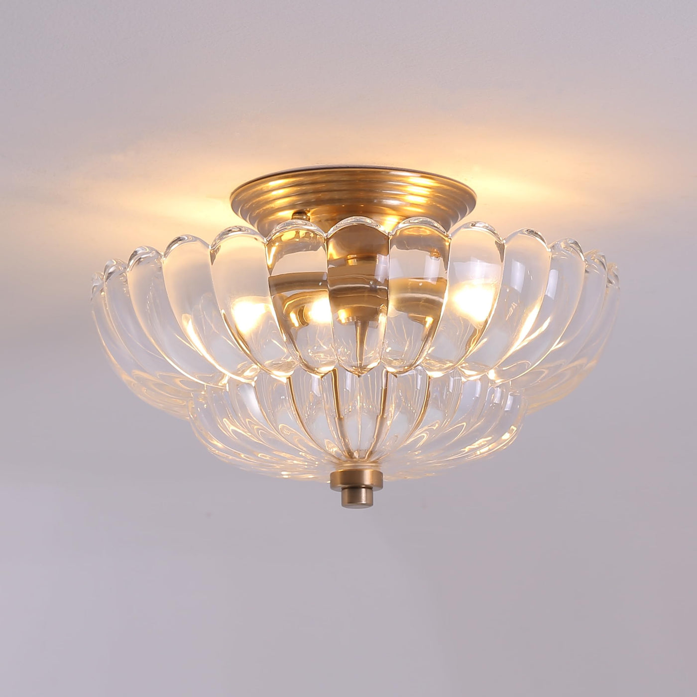 Semi Flush Mount Ceiling Light, Scalloped Clear Glass Close To Ceiling Light Fixtures With 2 Lights, Gold Vintage Light Fixtures