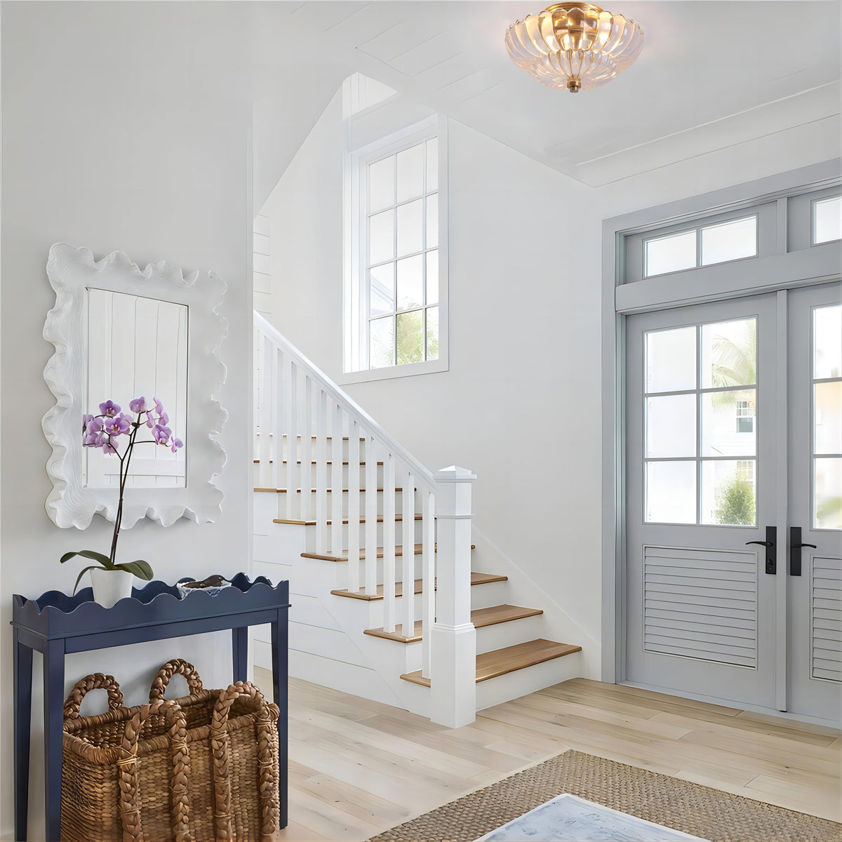 Q: What types of rooms are suitable for this light fixture?A: This vintage-style Semi Flush Mount Ceiling Light is perfect for various settings, including hallways, entryways, porches, mudrooms, stairwells, kitchens, closets, kids' rooms, dining rooms, bedrooms, and living rooms.