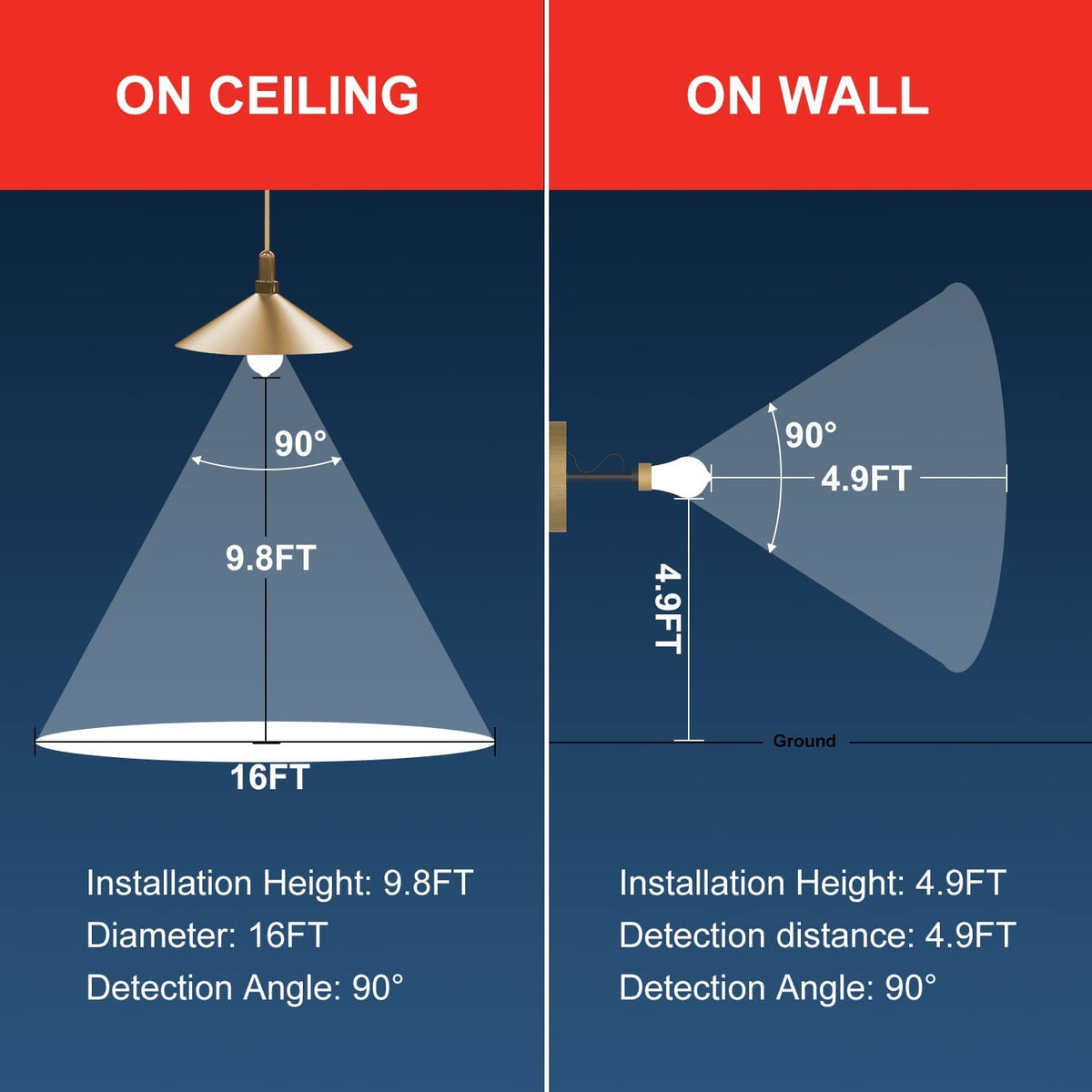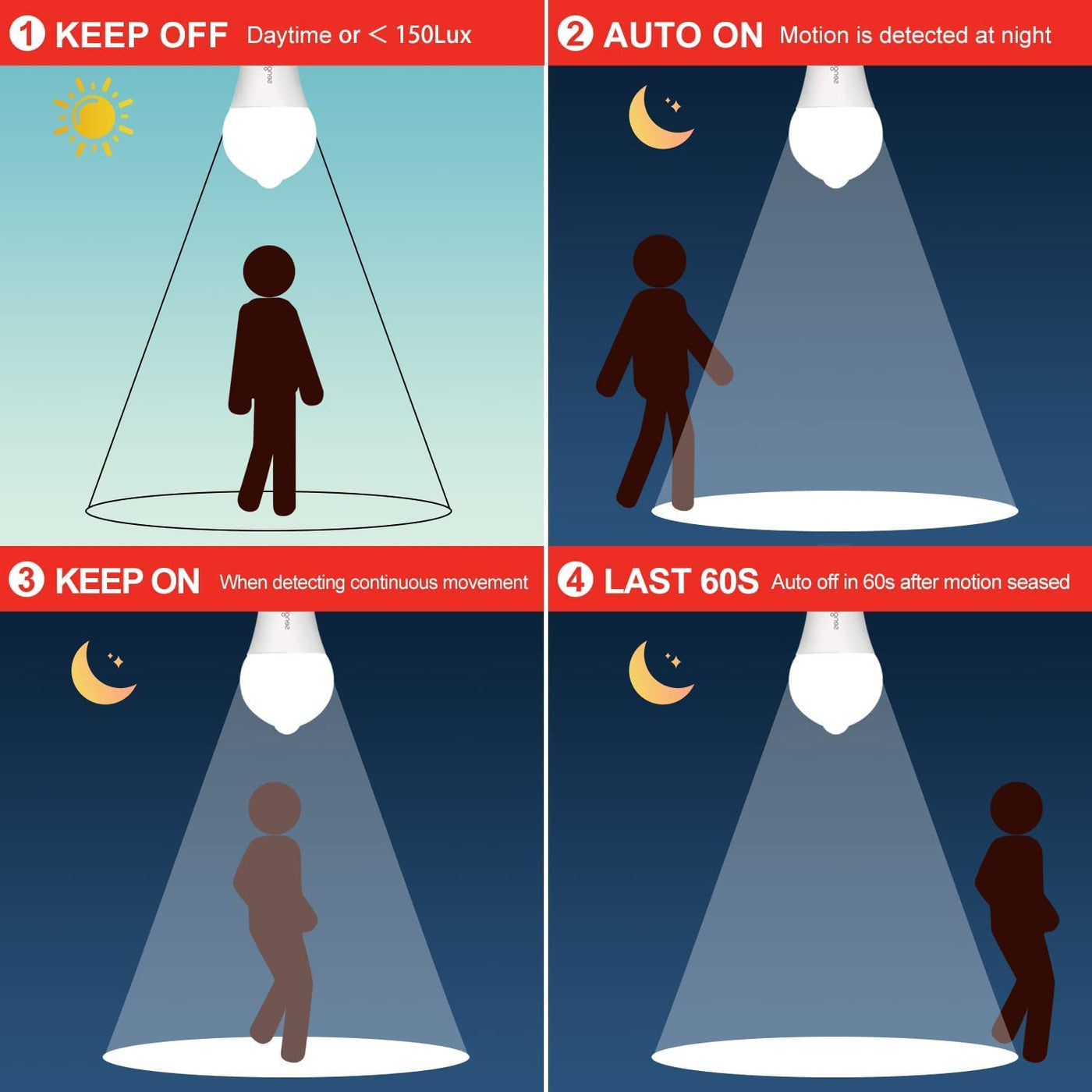 ?PIR Motion Sensor? The motion sensor light bulb stays off when no motion is detected and switches on for 60s once motion is detected within 8-20ft in the darkness. No need to switch on/off physically. NOTE: Make sure the sensor toward the direction people to increase the bulb's sensitivity. Not for sale in California. | ?Dusk to Dawn Sensor? Built-in a photocell sensor, the motion detection function is deactivated during the daylight hours and only reactivated when the ambient light is dark(