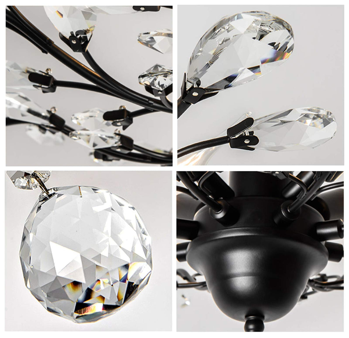 SEOL Vintage Crystal Branch Chandelier Flush Mount Light Fixture, 4 Lights, 160W, 24.5in Diameter, Black, Small Size, Model SLP1801PAPA