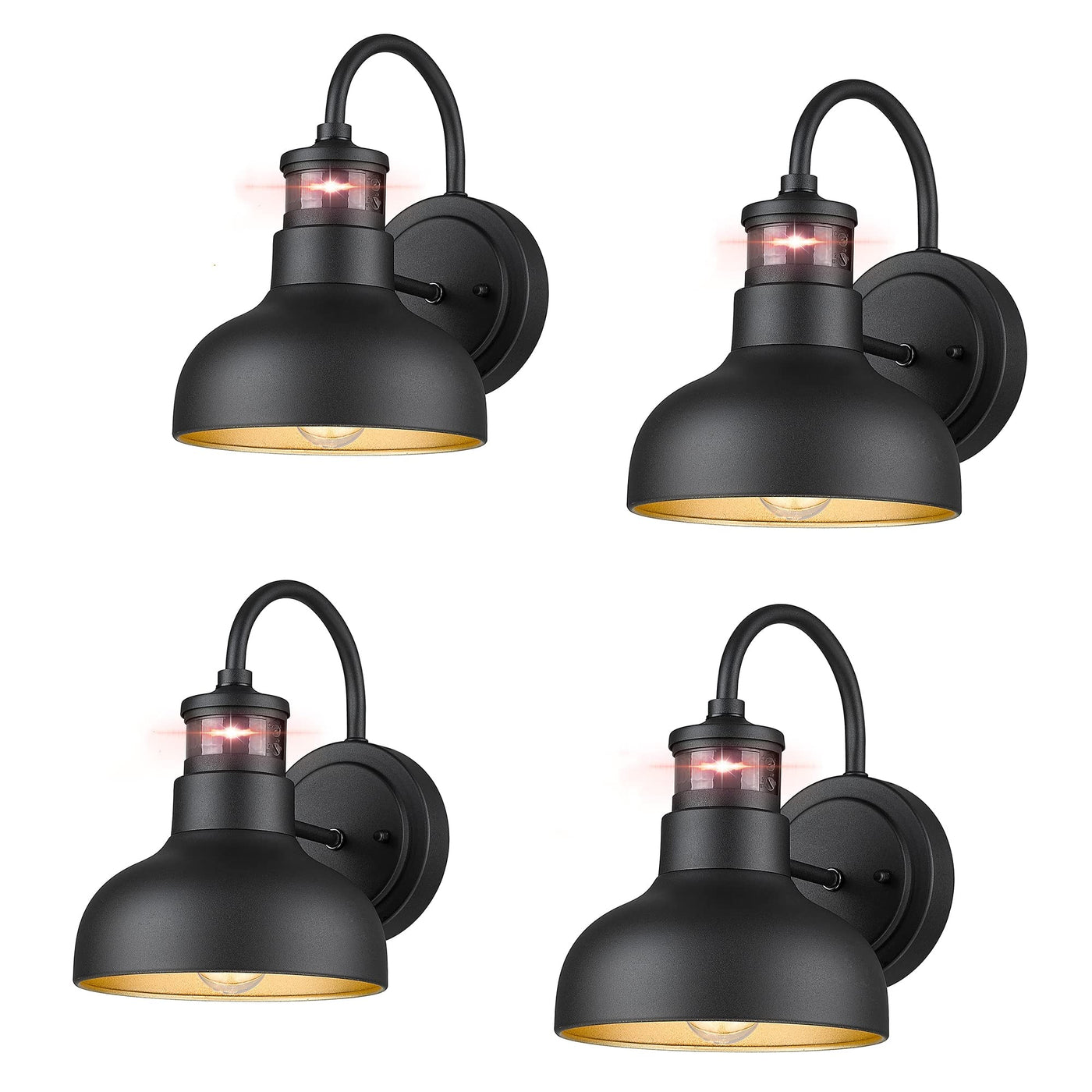 Seovix 4 Pack 9“ Motion Sensor Barn Lights, Outdoor Wall Lights With Dusk To Dawn Feature, Ip65 Waterproof Farmhouse Gooseneck Lights For House, Patio, Garage,Hsmd2215-4