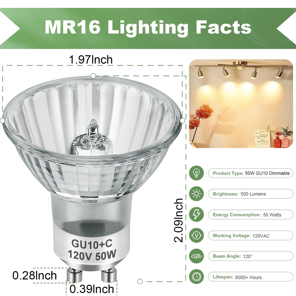 Serbion Gu10 120V 50W Halogen Light Bulbs For Track And Range Hood, Gu10+C Candle Warmer Lamp With Dimmable, 2700K Warm White, 6