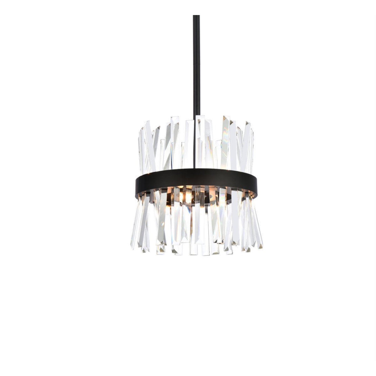 Modern crystal chandelier features top and bottom tier crystal prisms staggered along the wrought iron frame. The thick metal frame wraps around top grade crystal prisms ensure it is built to last, definitely worth it. Hang this work of art and dim the lights for a bit of sophisticated lighting in your home. The hanging rod conveniently comes with a slope ceiling adapter, perfect for your vaulted or angled ceiling.