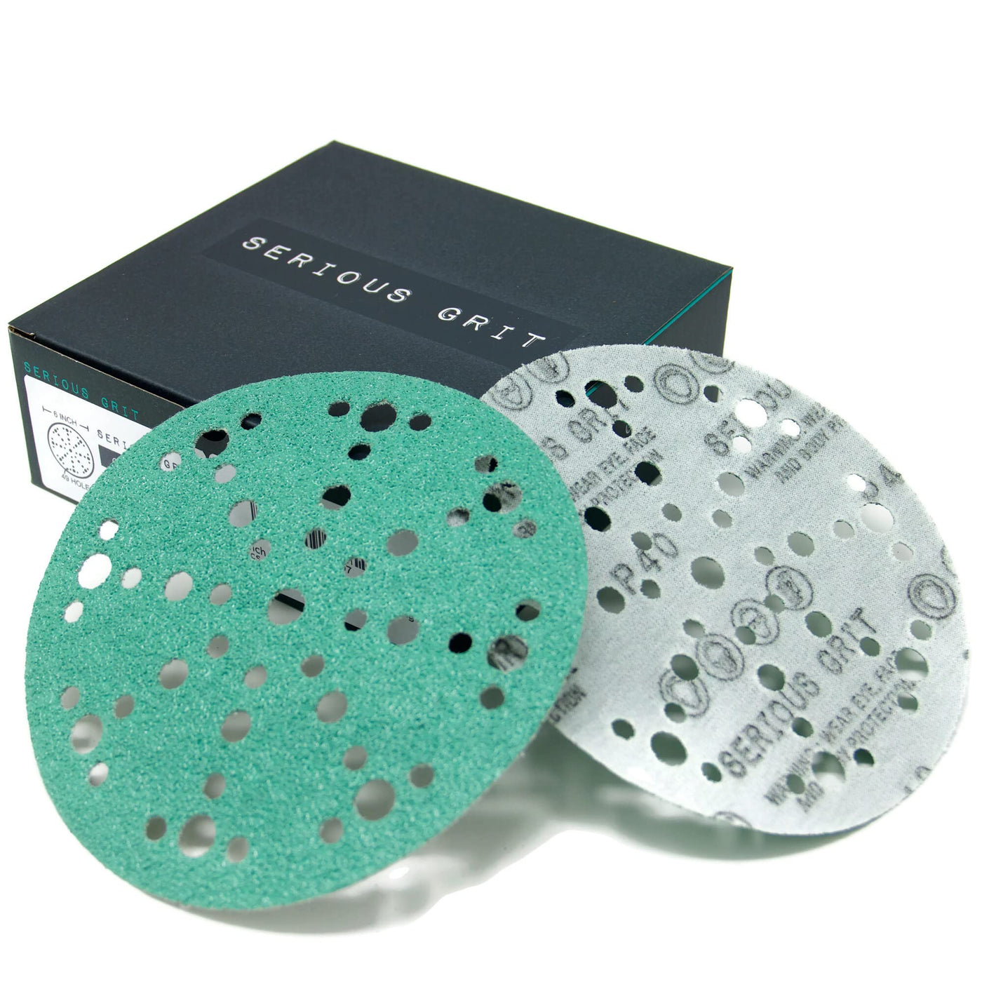 Q: Can I use Serious Grit sanding discs for wet sanding?A: Yes, Serious Grit sanding discs are designed for both wet and dry sanding applications, making them suitable for various projects including auto body work and paint removal.