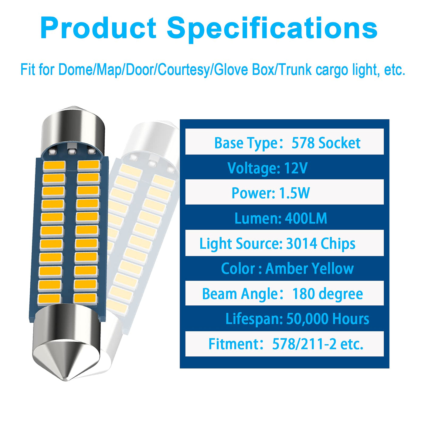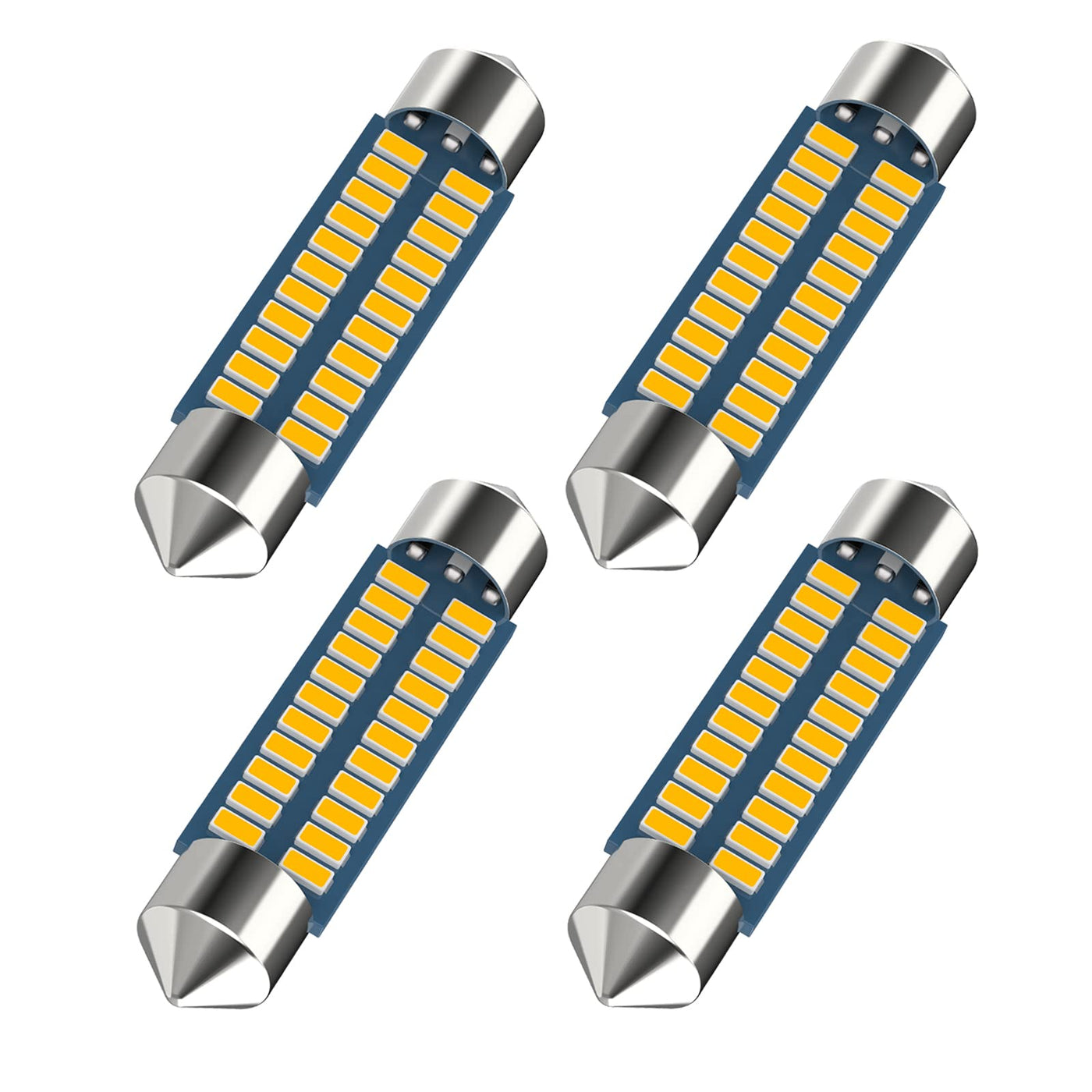 Serundo Auto 578 Led Festoon Bulb 211-2 Led Car Bulb 41Mm 42Mm 1.65In 212-2 Bulb For Car Map Light Dome Light, 22Smd 3014 Chips Interior Led Festoon Bulb,Pack Of 4Pcs Amber Yellow
