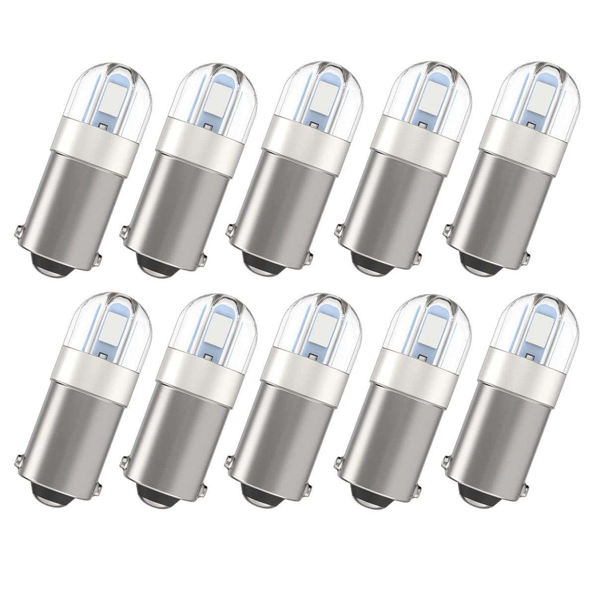 The Serundo Auto BA9S LED Replacement Bulbs are designed to provide superior lighting solutions for various automotive applications. This set includes 10 super bright bulbs that are ideal for door courtesy lights, map lights, license plate lights, and instrument cluster lights.