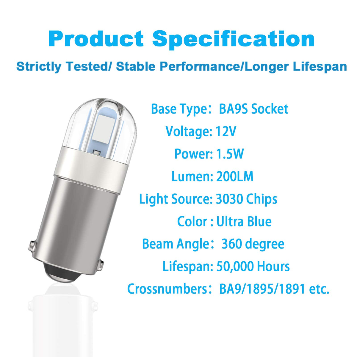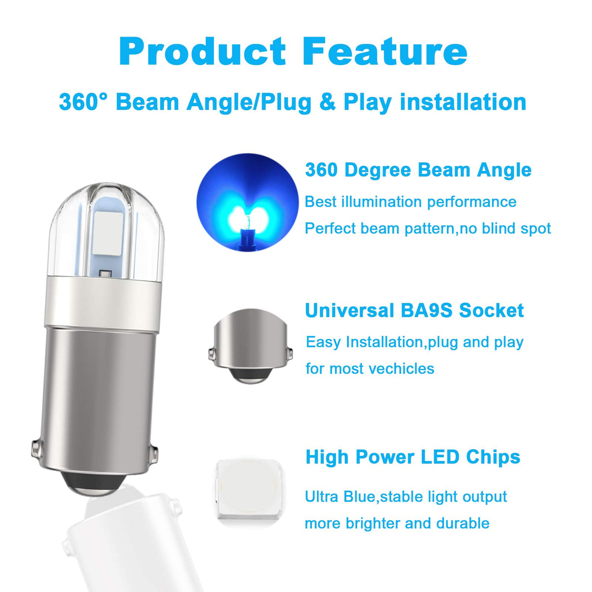 Includes 10 super bright BA9S LED bulbs for enhanced visibility.