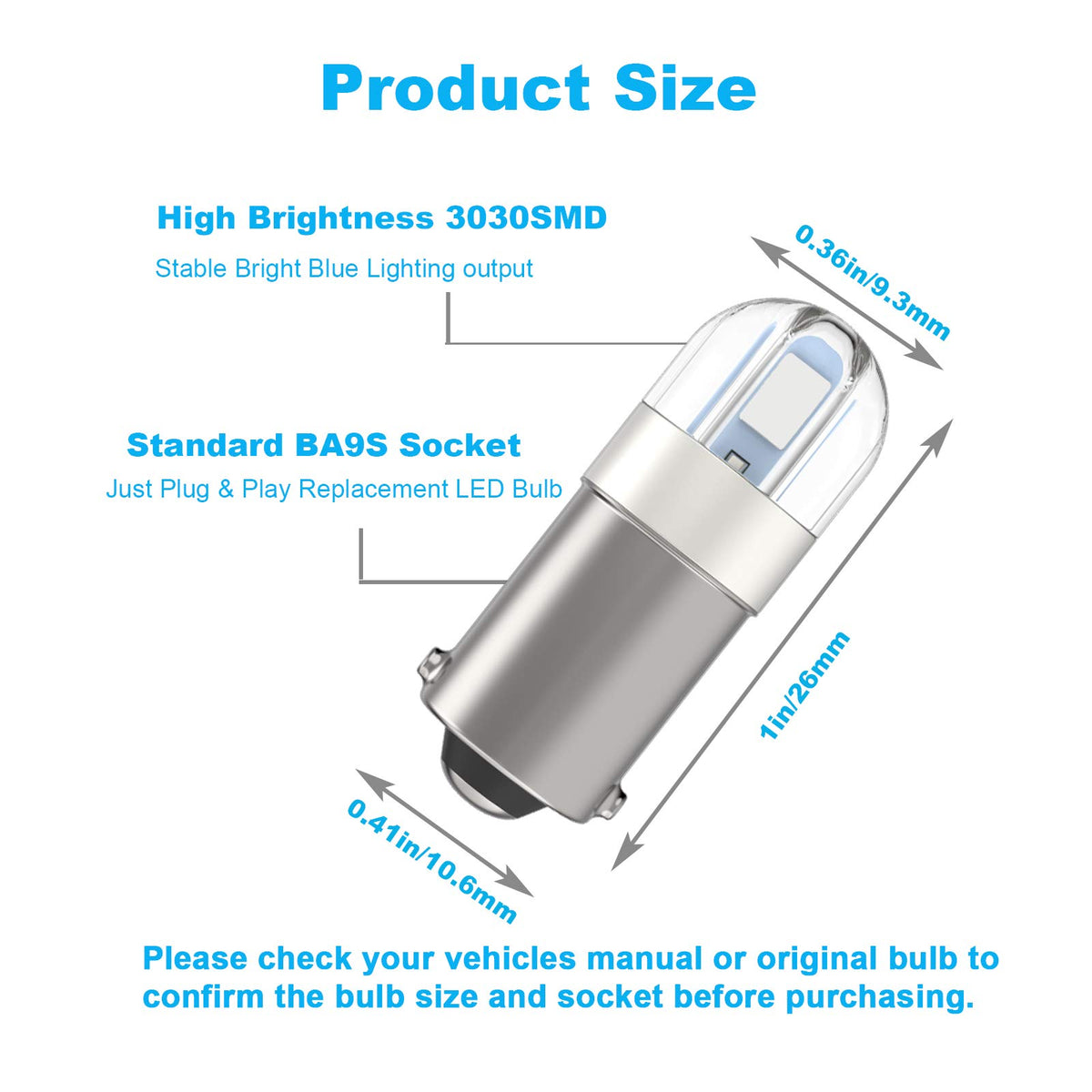 Serundo Auto BA9S LED Bulb, 2SMD 3030 Chips, Pack of 10, Blue, for Car Interior Dome Map License Plate Light
