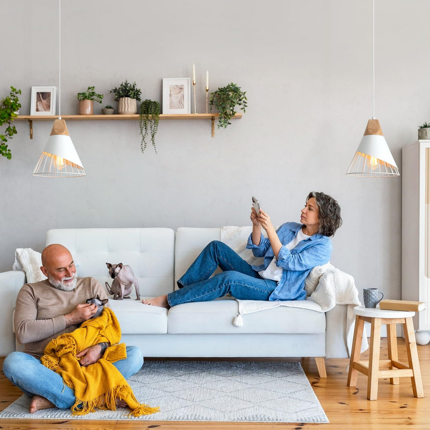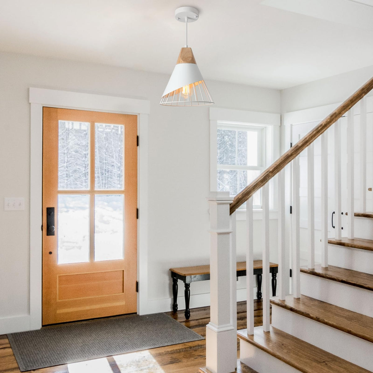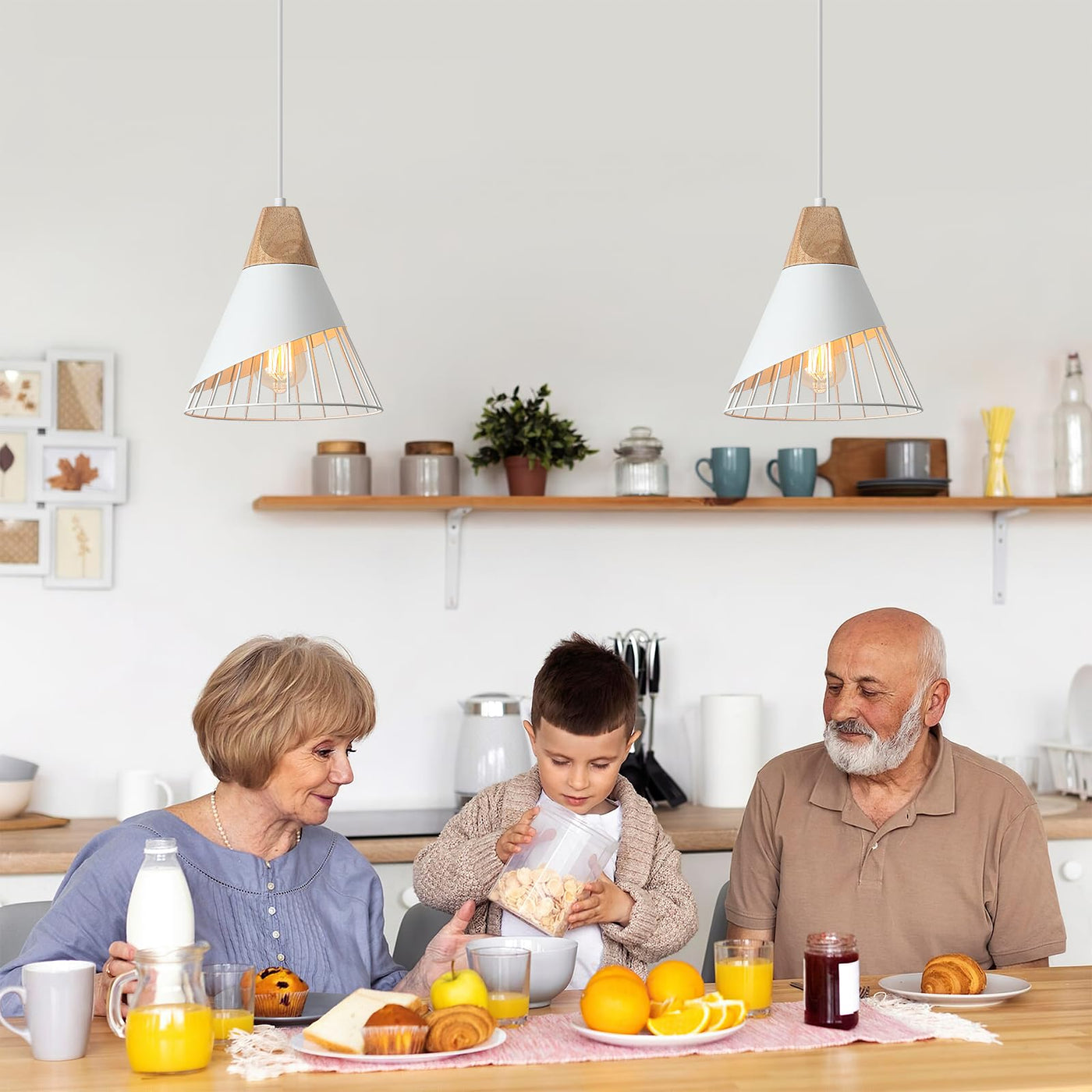Q: What is the material used in the construction of these pendant lights?A: The SESIMENT White Pendant Light is made from high-quality iron and natural wood. This combination ensures durability while enhancing the aesthetic appeal of the lights.