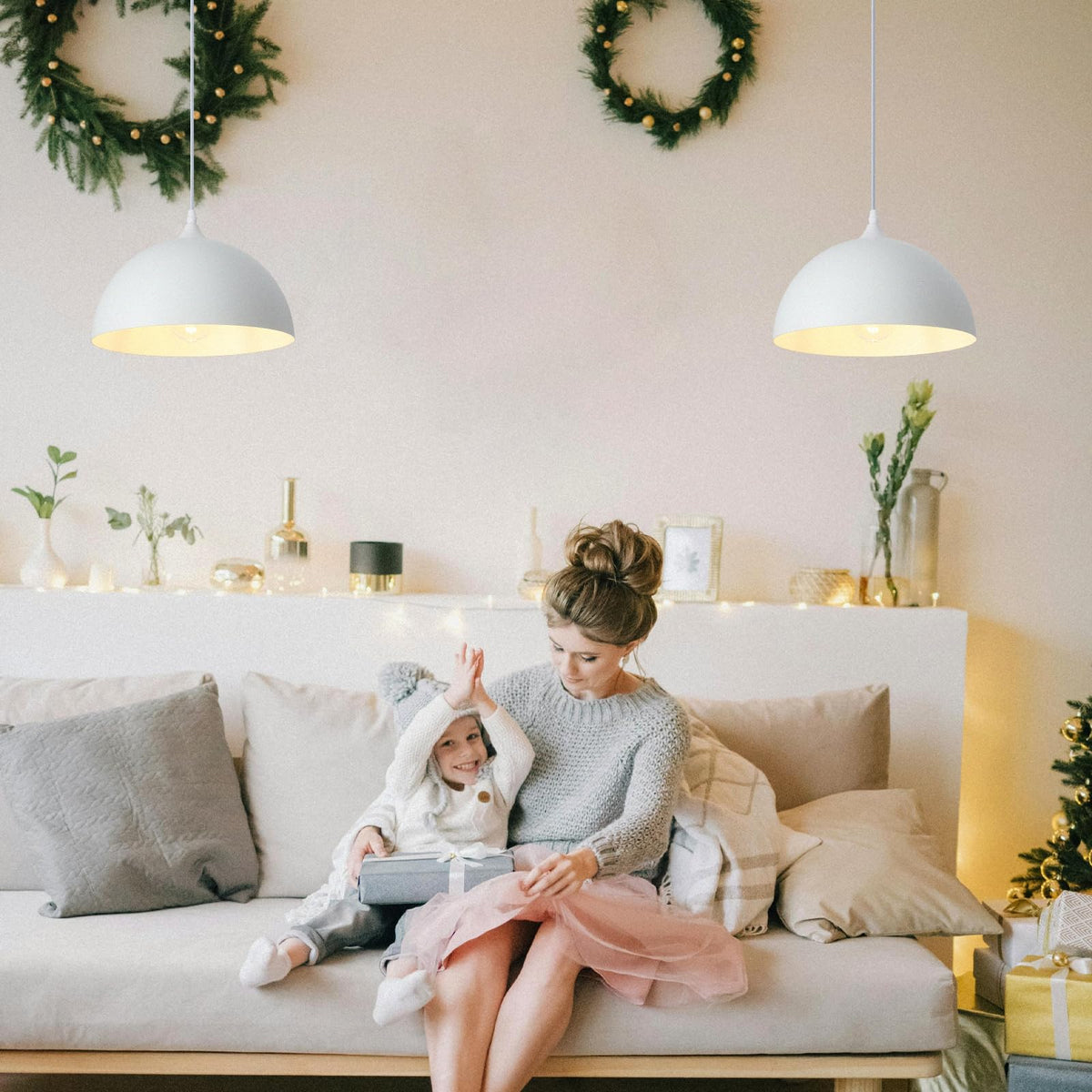 SESIMENT White Farmhouse Pendant Light 11.8inches 2 Packs, Kitchen Pendant Light, Pendant Lights Kitchen Island, Industrial Pendant Light, Pendant Light for Kitchen, Bedroom, Office