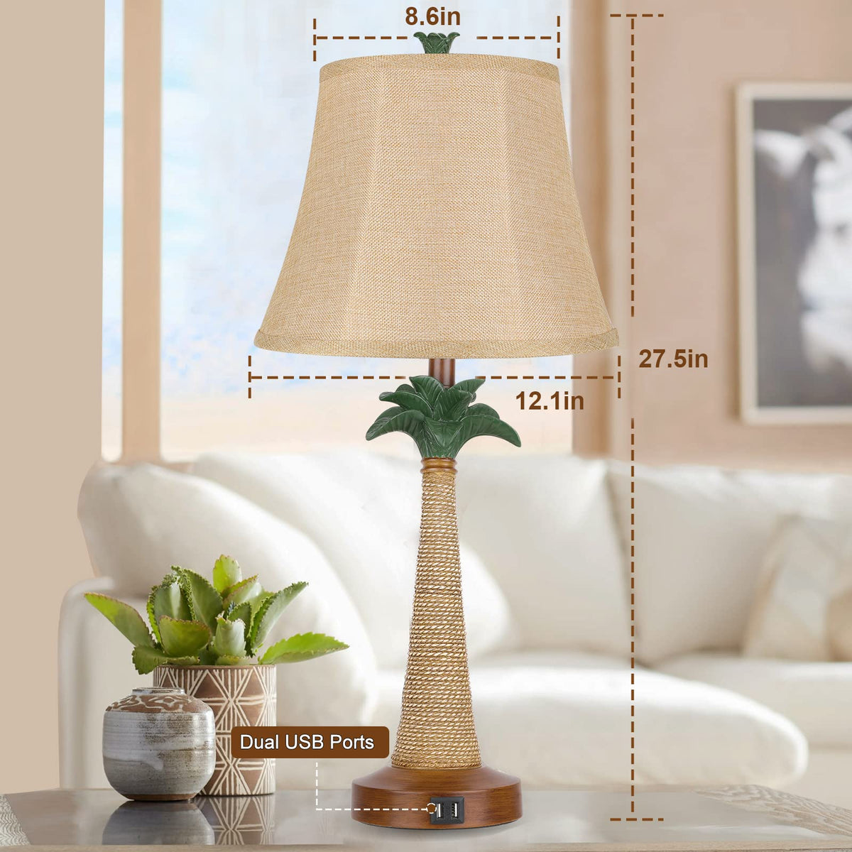 Set Of 2 Coastal Palm Tree Table Lamps With 2 Usb Ports For Living Room Beach Nautical Bedside Lamps For Bedroom Tropical Nights