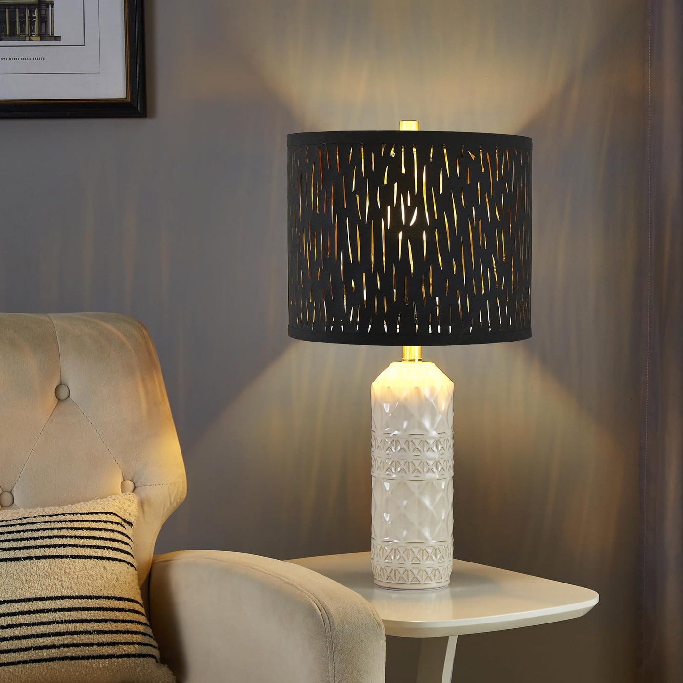 Set Of 2 Drum Lamp Shade 12'' Top X 12'' Bottom X 9'' High (Spider) Black Carved Color For Table Lamps & Floor Lamps Replacement Lampshade By Onext