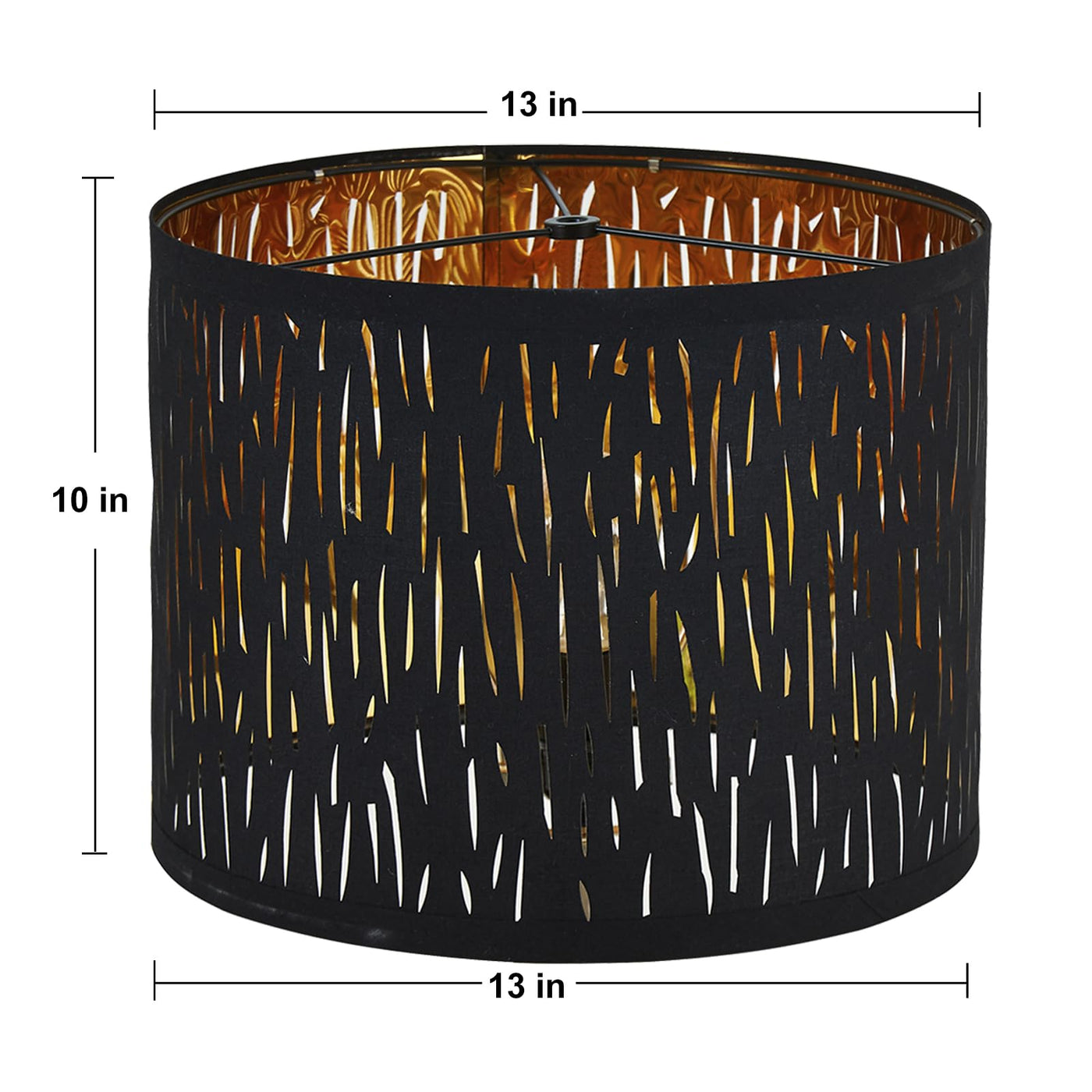 Q: What are the dimensions of the drum lamp shades?A: The drum lamp shades measure 13 inches at the top, 13 inches at the bottom, and 10 inches in height, making them suitable for various lighting fixtures.