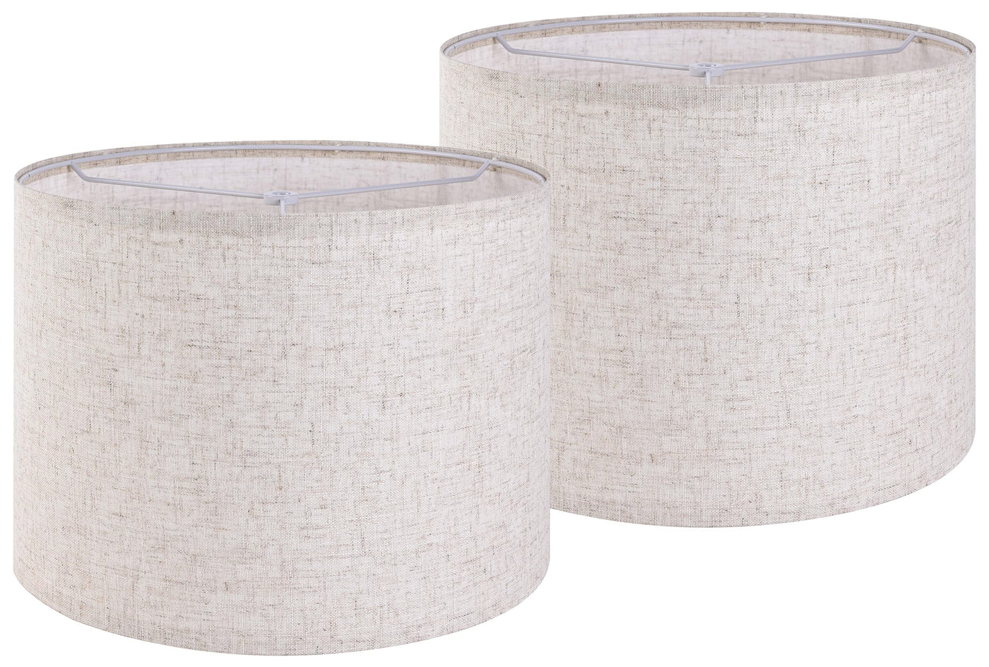 Q: What are the dimensions of the drum lampshades?A: The drum lampshades measure 10 inches in height, with a top diameter of 13 inches and a bottom diameter of 13 inches, making them perfect for most table and floor lamps.