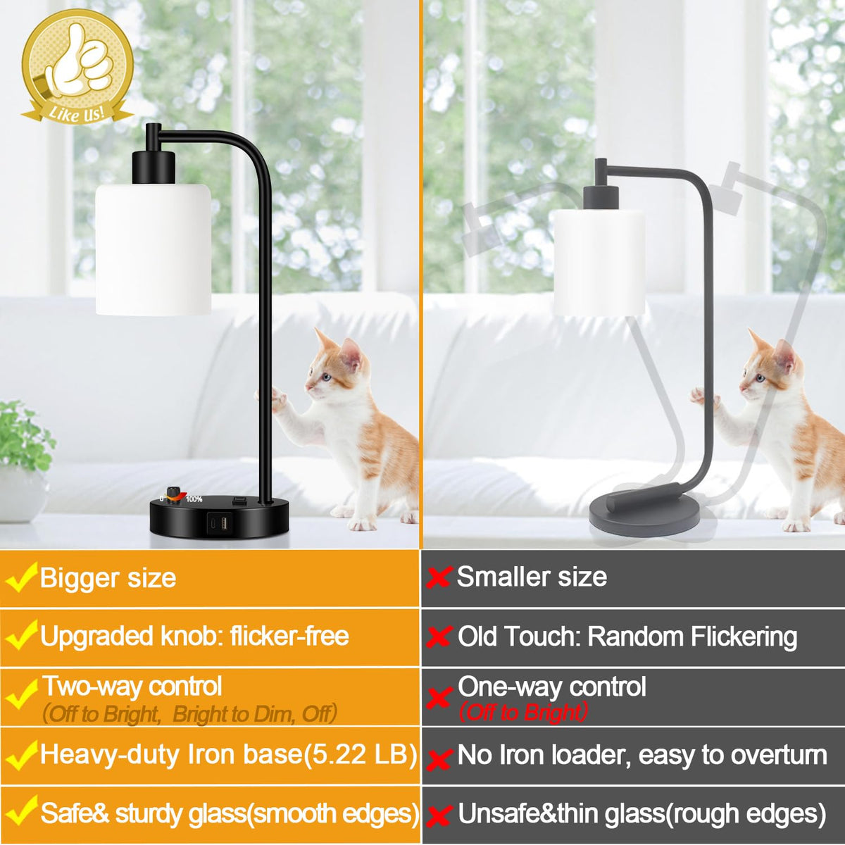 Upgraded Stepless Dimming - Our Matte Black Table Lamps Have A Smooth-Turning Dimmer Switch, Allowing Easy Brightness Adjustment From High To Low, Including Direct Lamp Turn-Off. This Sets Our Lamps Apart From Touch Control Alternatives That Require Cycling Through All Settings To Turn Off. With These Upgrades, Our Black Lamps Offer A More Efficient And User-Friendly Experience | Sturdy & Children Protection - Our Set Of 2 Bedside Lamps Prioritizes Durability And Safety. With A Heavy-Duty Metal Base And An Anti-Skid Pad, They Offer Enhanced Stability And Prevent Shaking. The Reliable Anti-Skid Pad Ensures The Lamp Remains Securely In Place, While The Sturdy Holding Poles Are Designed To Withstand Accidental Falls Without Bending Or Becoming Crooked. This Thoughtful Design Provides Added Safety, Making Our Lamps For Bedroom Perfect For Households With Children Or Pets | Dual Fast Usb Charging Ports - Our Bedside Table Lamp Features Upgraded Usb-C And Usb-A Charging Port (5V/2.1A), Enabling Convenient And Rapid Simultaneous Charging Of Electronic Devices. Whether The Lamp Is On Or Off, You Can Effortlessly Charge Your Mobile Phones, Ipads, Kindles, Headsets, Diffusers, Speakers, And Other Electronics With Ease | Includes 2 Free Dimmable Led Bulbs - Our Industrial Desk Lamp Is Equipped With Two T45 Dimmable Led Vintage Bulbs. These Energy-Efficient Bulbs Consume Only 8W Of Power While Emitting A Soft And Natural Light With 800 Lumens Of Brightness. With An Impressive Lifespan Of Over 25000 Hours And A 90% Energy-Saving Feature, They Provide Flicker-Free And Non-Dazzling Illumination, Ensuring Optimal Eye Protection | 60-Month Warranty - We Have Full Confidence In The Quality Of Our Products, Which Is Why We Offer An Extensive 60-Month Warranty. If Your Nightstand Lamp Experiences Any Defects Or Malfunctions Within 5 Years, We Are Dedicated To Replacing The Entire Product. Should You Encounter Any Issues With Our Table Lamp For Bedroom, Please Don'T Hesitate To Contact Us Via The Amazon Message Box, And We Will Respond Promptly Within 24 Hours