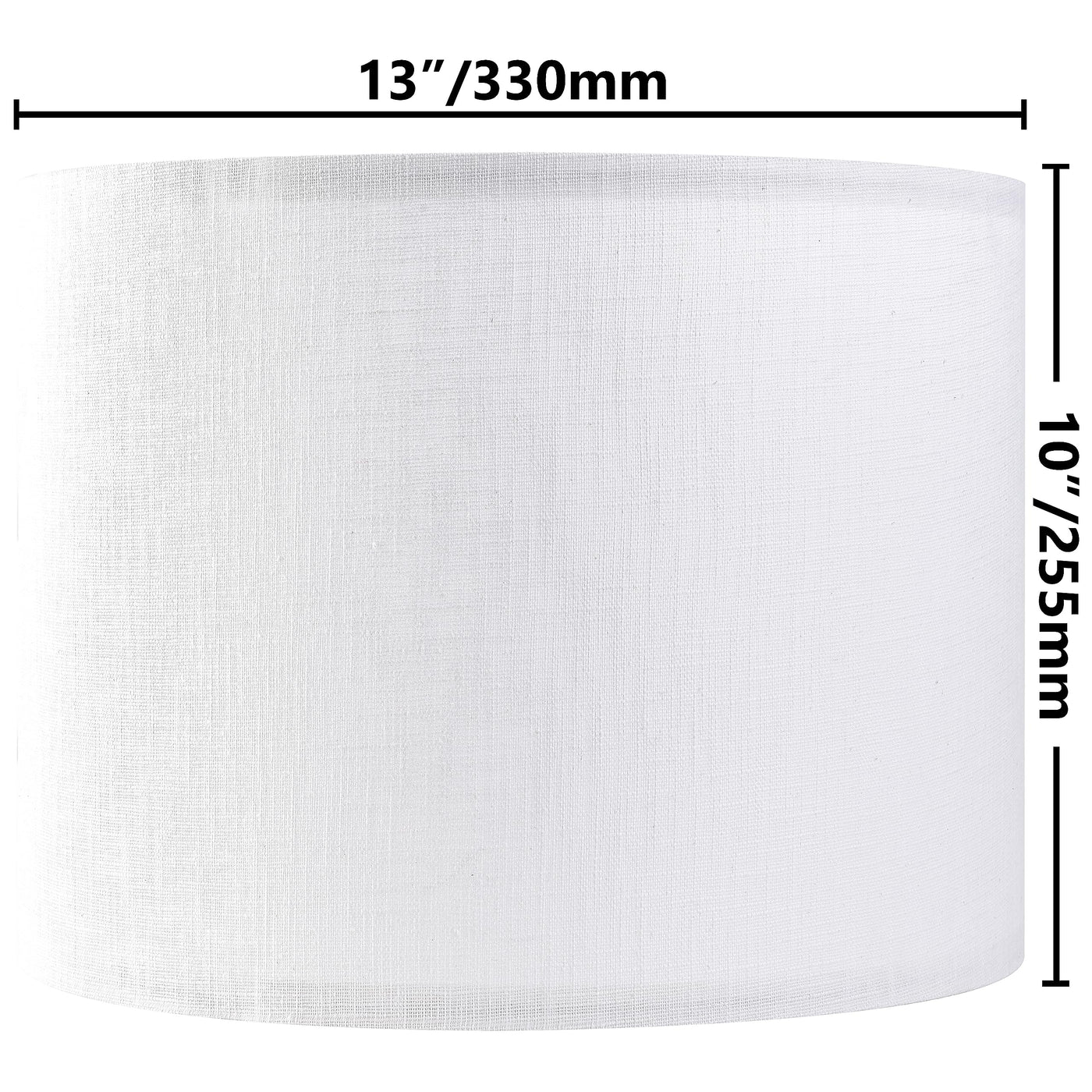 Q: What are the dimensions of the Pure White Linen Drum Lamp Shades?A: The Pure White Linen Drum Lamp Shades have a height of 10 inches, a top diameter of 13 inches, and a bottom diameter of 13 inches, making them ideal for most table and floor lamps.