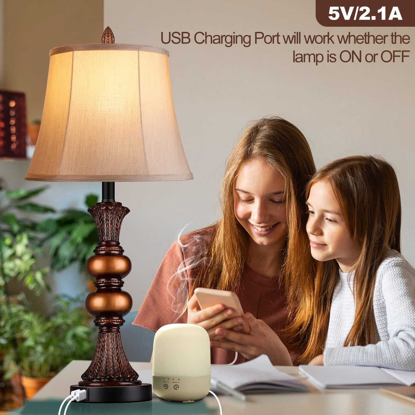 Q: How do the USB charging ports work on these lamps?A: Each lamp features two USB charging ports conveniently located on the base. These ports remain functional whether the lamp is on or off, allowing you to charge devices like smartphones and tablets easily.