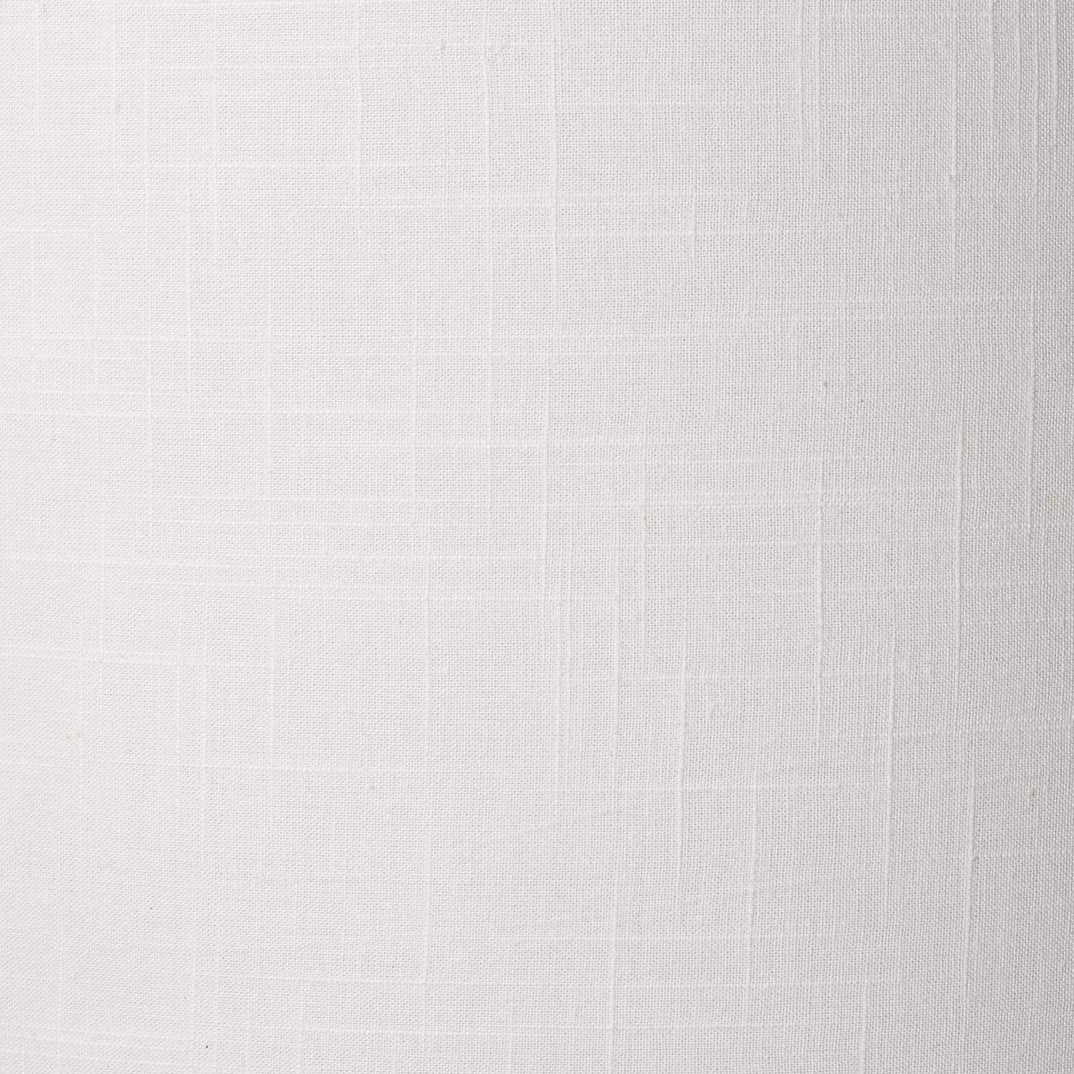 Q: What material are these lamp shades made of?A: These lamp shades are made from white fabric, featuring a clean and simple design with a wide self ribbon trim at the top and bottom.
