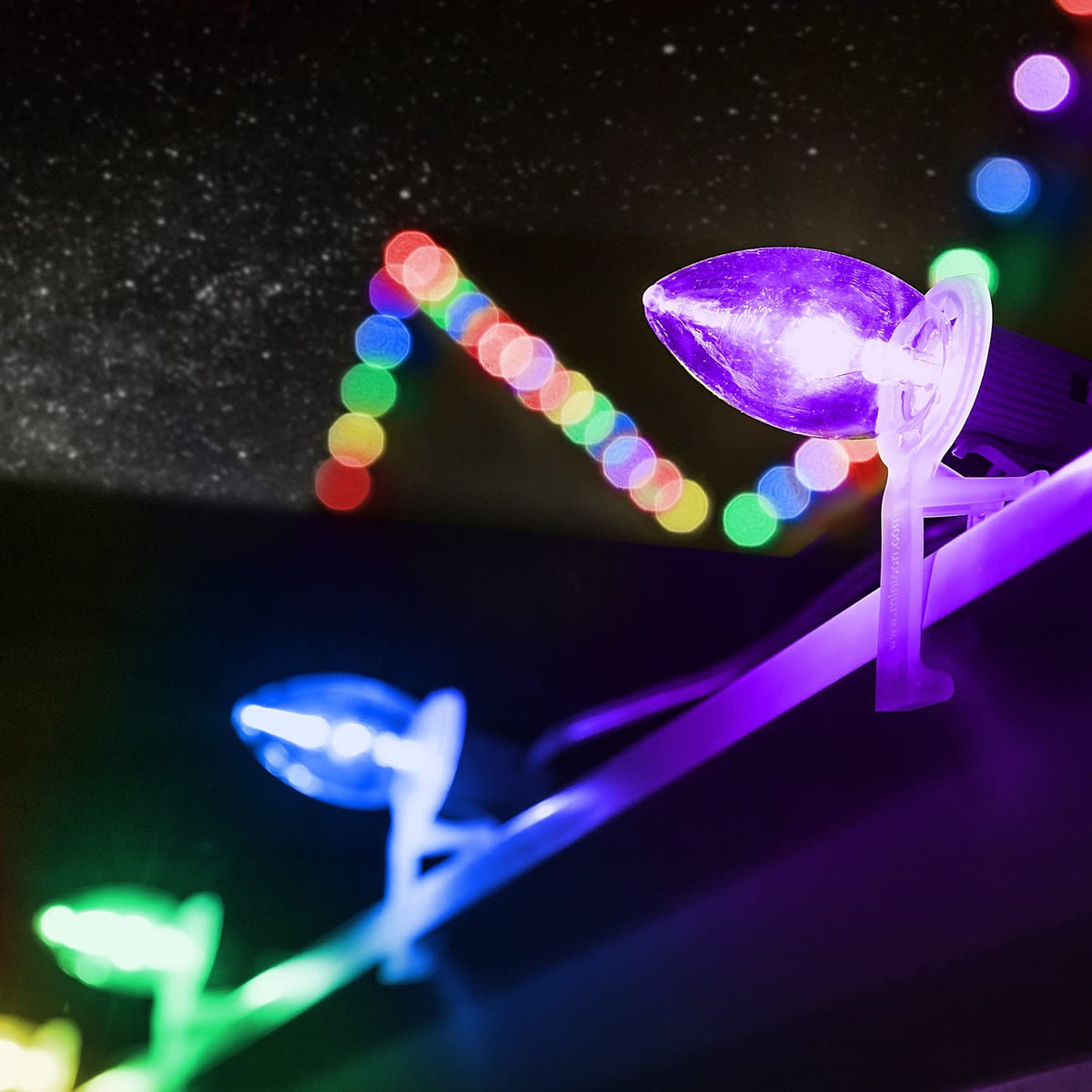 Q: How many lights are included in this set, and what are the color options?A: This set includes 500 multi-colored C9 LED lights, featuring vibrant colors such as red, green, blue, yellow, and purple. These colors add a festive touch to any holiday decoration.