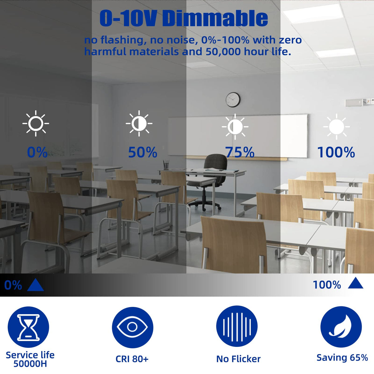 Q: Is the SEURON LED panel dimmable?A: Yes, this LED panel is 0-10V dimmable, allowing for smooth dimming from 10% to 100%. It is compatible with triac dimming switches, providing versatility in lighting adjustments.